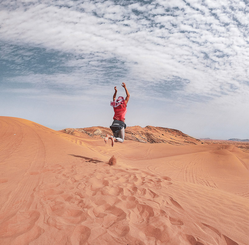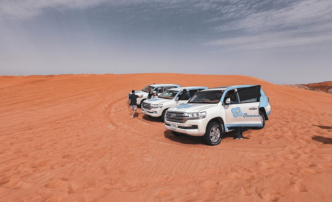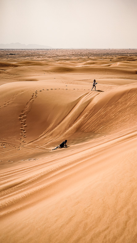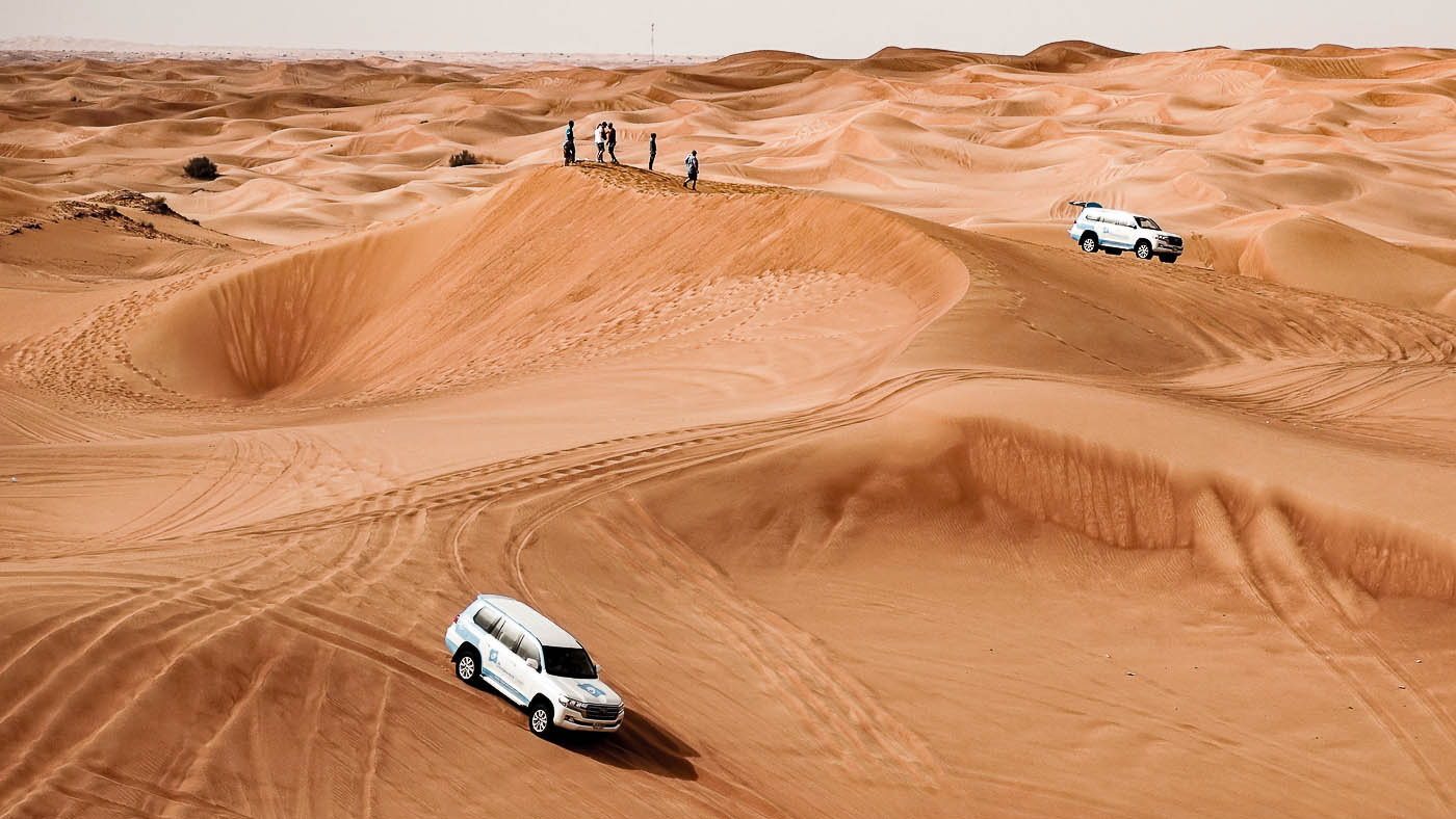 Zu einem Urlaub in Dubai gehört die Wüstensafari mit dem Besuch einen Beduinendorfes und einem kurzen Kamelritt dazu. Die Wüstensafari kann man vor Antritt der Reise oder im Hotel buchen. Die Fahrt aus der Stadt dauert ca. 30-40 Minuten bis zum ersten Stopp. Hier gibt es meist einen kleinen Snack und nach Bedarf die Möglichkeit sich etwas einzukleiden (Kopftuch als Schutz vor der Hitze und dem Sand). Die Fahrer bereiten zudem die Fahrzeuge für die Tour in der Dünen vor (Luft wird aus den Reifen gelassen). Die Fahrt erfolgt in einer Jeep Kolonne und drückt den Adrenalinpegel deutlich nach oben. Sensationell steil und wild geht es 30 Minuten durch die Dünen und festhalten ist Pflicht. Vor der Fahrt sollte man sich jedoch gut erkundigen, ob dieses für einen geeignet ist (Schwangere, Menschen mit Rückenproblemen oder einem schwachen Magen können von der Fahrt ausgeschlossen sein). Riesen Spass und ein atemberaubendes Abenteuer ist euch hier garantiert. Die Fahrer sind sehr geübt und achten auf die Gäste. Der Nächste Stop bietet je nach gebuchter Variante einen kurzen Ritt auf einem Kamel, Sandboaridng oder Quad fahren. Die ganztägigen Touren führen die Gäste am Ende in einen Beduinendorf. Ein weiteres Spektakel mit traditionellem Essen, Henna Malereien und Tänzen machen das Abenteuer zu einem märchenhaften Ausflug. Die Kosten für eine Wüstensafari liegen bei 60-90 Euro und sind mehr als gut investiert. Dieses Tag werdet ihr nicht so schnell vergessen.