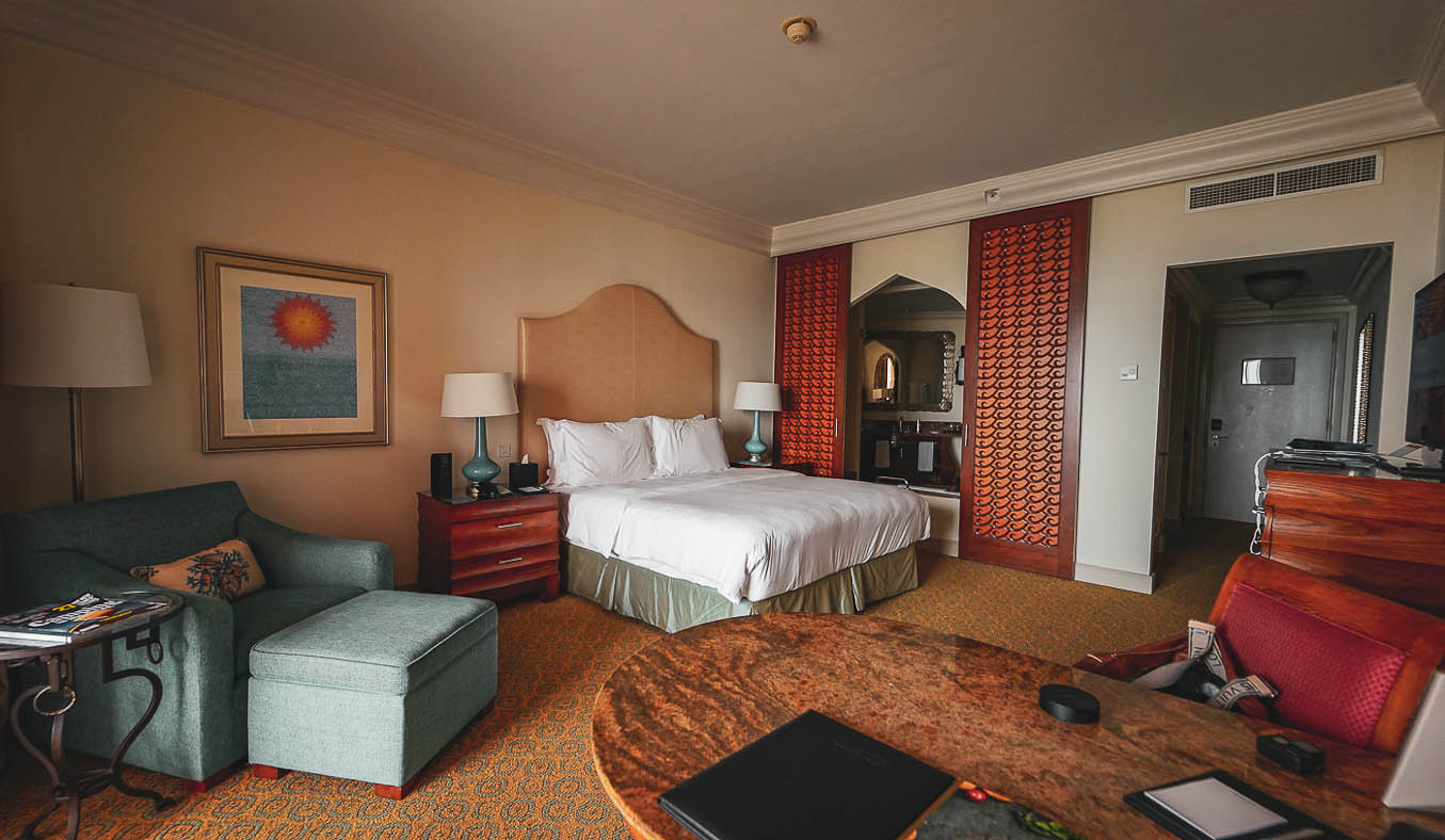 Ein Hotel in Dubai mit grandioser Aussicht zu finden ist nicht schwer. Für einen ersten Besuch in der Stadt empfiehlt sich ein Hotel im Zentrum (Downtown Dubai), um schnellst möglich die Highlights sehen zu können. Die Anbindung zur Metro ist optimal und die Wege sind kurz. Für ein Zimmer der gehobenen Kategorie sollte man ca. 200 Euro pro Nacht einplanen. Wer jedoch einen Strandurlaub in Dubai machen möchte, der ist in den Hotels an den Jumeirah Stränden besser aufgehoben oder auch auf der Palme , z.B. im Atlantis The Palm Hotel. Die Strandhotels sind im Schnitt etwas teurer, da sie einen direkten Strandzugang haben. Es gibt in Dubai nur wenige öffentliche Strände, die für jeden zugänglich sind. Empfehlenswert ist auch die Verpflegung mit Halbpension zu wählen, da die Nebenkosten insbesondere beim Essen in Dubai teurer sind als in Deutschland. Meine Empfehlung für ein zentral gelegenes Stadthotel mit einem kostenlosen Shuttle zum Strand ist das „Jumeirah Emirates Towers“. Die Metro befindet sich in unmittelbarer Nähe und bis zur Dubai Mall bzw. dem Burj Khalifa sind es nur 10 Minuten ( 2 Metro Stationen). Für einen Strandurlaub oder Familienurlaub mit Kindern ist das „Atlantis the Palm“ ideal. Mehrere Pools, großer Strand und der kostenlose Eintritt in den „Aquaventure Park“ versprechen einen wunderbaren Urlaub.