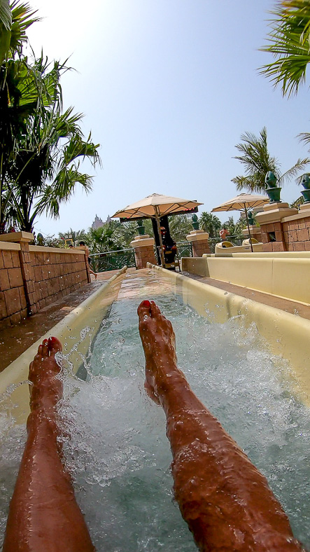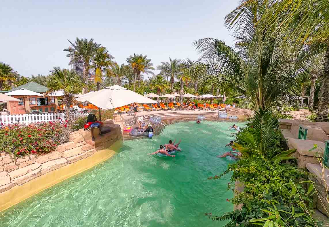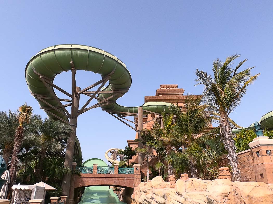 Der Aquaventure Park ist der größte Wasserpark in Dubai und sollte bei einem Besuch in Dubai nicht fehlen. Eine Überlegung ist es einige Nächte im „Atlantis the Palm“ Hotel zu verringen, den Hotelgäste haben kostenlosen Eintritt in den Wasserpark und eine Ermässigung für das Aquarium „the Lost Chambers“. Für den Wasserpark sollte man schon einen ganzen Tag einplanen, denn nicht nur die große des Parks und die unzähligen Rutschen wollen getestet werden, sondern auch gelegentliches Anstehen gehört dazu. Das Anstehen fällt sich trotz optisch langer Warteschlangen in Grenzen. Der Eintritt in den Wasserpark kostet für Erwachsene 70 Euro. In dem Dubai Pass (mind 3 Tage), der zahlreiche weitere Attraktionen beinhaltet, ist der Aquaventurepark inklusive. Nicht nur Wasserrutschen, Wellenreiten oder gemütliche Wasserschnellen locken die Urlauber, auch am langem Strand ist jede Menge Platz für Erholung. Am Eingang gibt es gegen Gebührt Schließfächer, falls ihr euch entscheidet diese zu verstauen. Handtücher bekommt ihr kostenlos am Eingang und im Park an vielen Ausgabestellen.