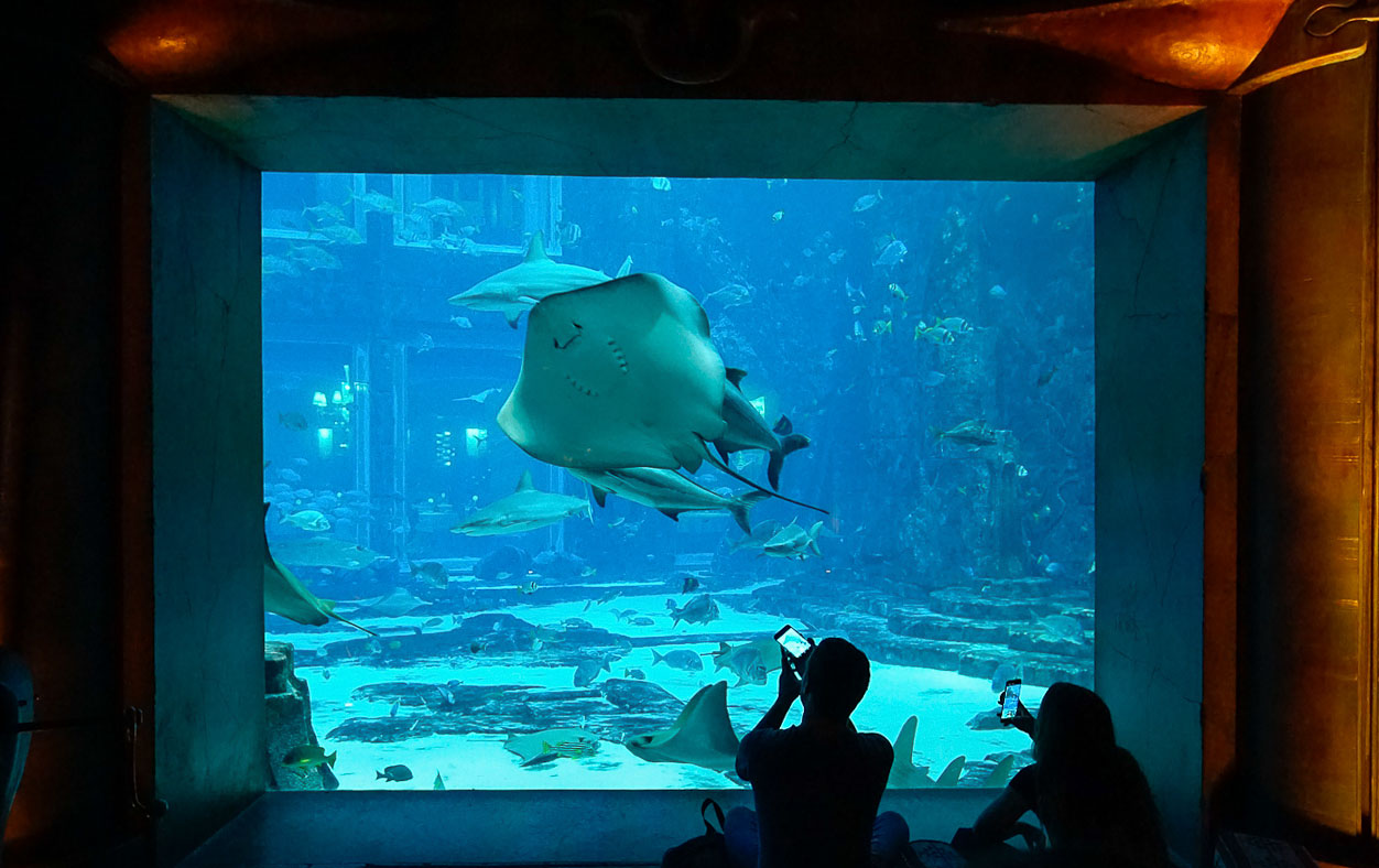 Mit der Eintrittskarte vom Aquapark habt ihr auch die Möglichkeit vergünstigt das Aquarium „The Lost Chambers“ zu besuchen und ihr solltet euch das nicht entgehen lassen. Gigantisch große Aquarien mit noch größeren Fischen laden zum Staunen ein. Mit etwas Glück könnt ihr die Taucher beim Putzen der Aquarien beachten oder bei der Fütterung der Tiere.