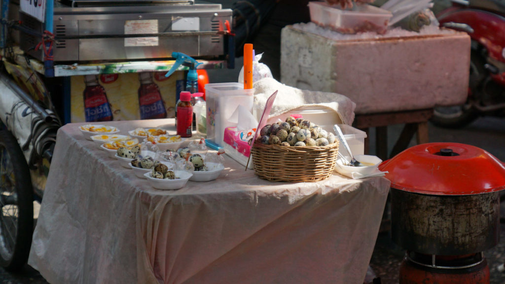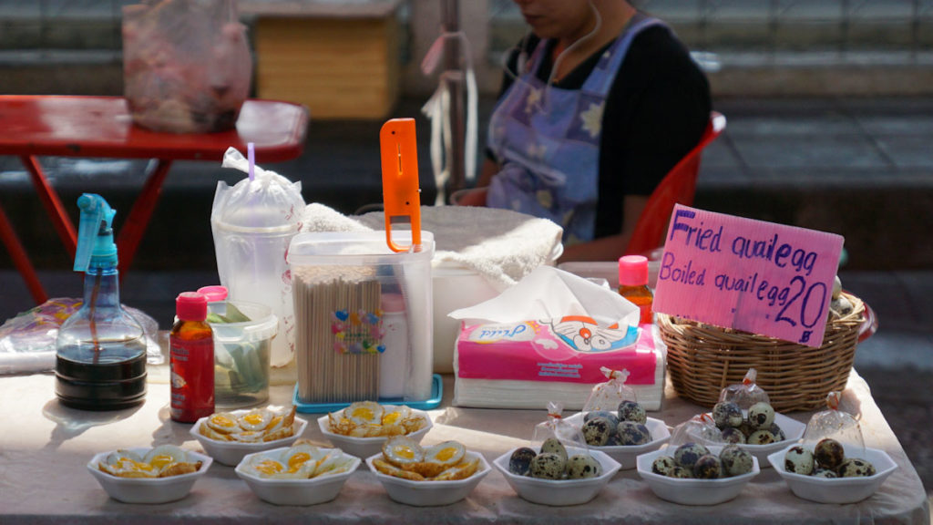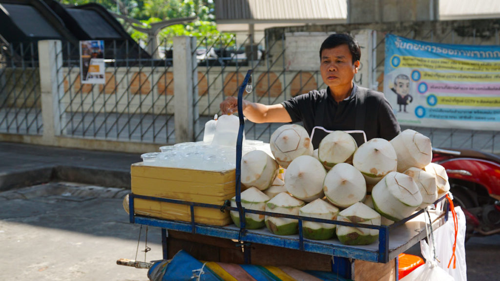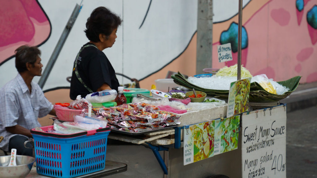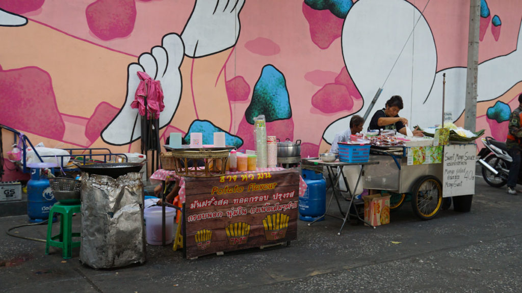 In Bangkok kann man tatsächlich den Kauf und Essrausch erleben. An jeder Ecke gibt es Strassenstände mit Essen & Getränken. Nicht immer ist alles, so wie wir es kennen, aber es schmeckt trotzdem. Die Suppe in einer Tüte ist tatsächlich optisch gewöhnungsbedürftig, aber hier ist es eben normal. Bangkok lebt und ist zugleich schon fast eine kleine Reizüberflutung für die Augen. Nach zwei Tagen gewöhnt man sich jedoch an dieses geordnete Chaos und erfreut sich der zahlreichen Möglichkeiten.