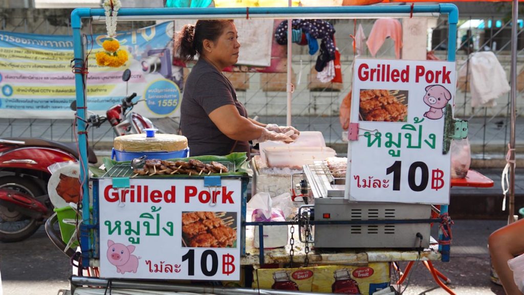 Thailand ist für viele auch aufgrund der niedrigen Nebenkosten so attraktiv. Ein Hauptgericht kostet zwischen 150THB(3,90€= und 300THB in einem besseren Restaurant (9€) , ein Bier ca. 80THB (ca.2,10€), ein Softgetränk ca. 30THB . In typischen Essenshallen, wie in Bangkok haben wir für ein Hauptgericht auch nur 30-50THB pro Gericht gezahlt. Die Preise sind von Ort zu Ort schon etwas unterschiedlich, aber trotzdem noch deutlich günstiger als bei uns.