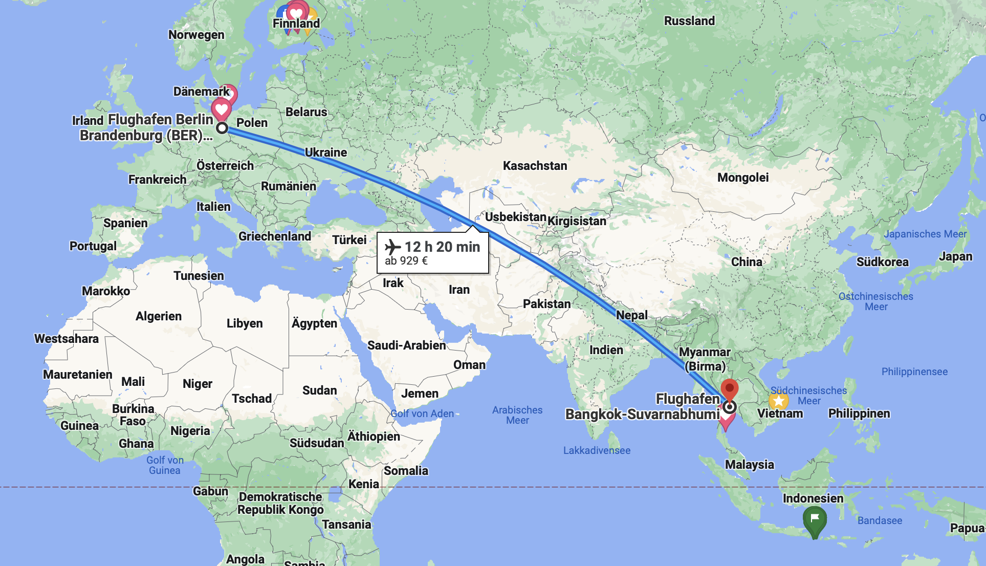 Ich empfehle hier erst nach Bangkok für 3-4 Tage zu fliegen und von dort aus die Route fortzuführen und einen längeren Aufenthalt an Thailands schönen Stränden zu buchen, um sich an das Klima und die Zeitumstellung zu gewöhnen und anzukommen.