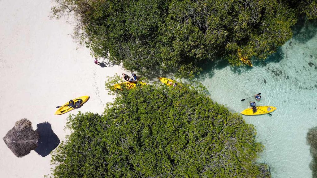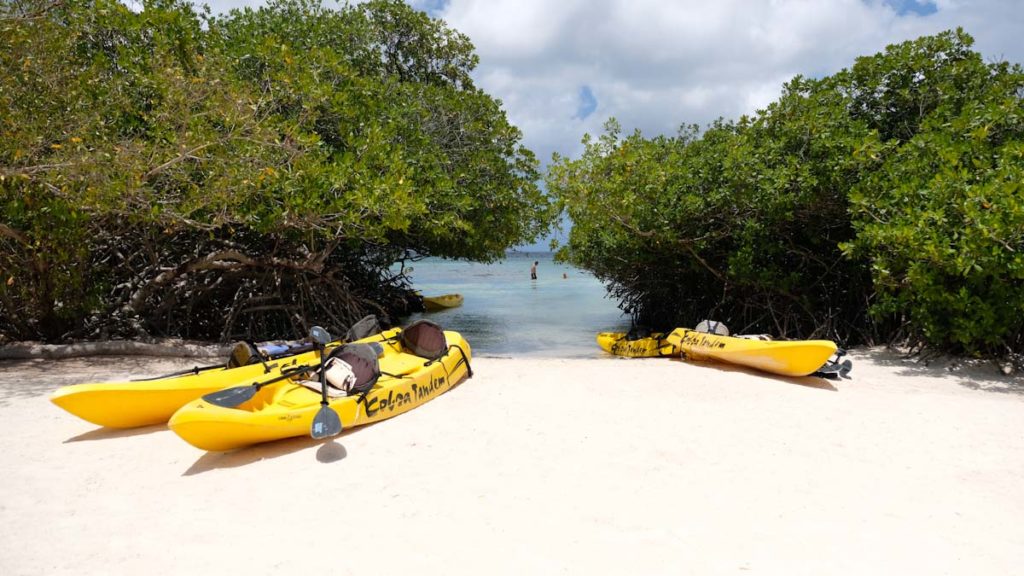 Aruba hat jede Menge tolle Plätze zum Schnorcheln ( und zahlreiche Schätze, die man Unterwasser findet) und eine einzige Kayak Vermietung auf der ganzen Insel. Mit dem Anbieter Kayak Adventure Aruba könnt ihr zwischen zwei Touren wählen. „De Palm Island“ Tour oder die „Mangel Halto Reef“ Tour jeweils mit einem längeren Schnorchel Aufenthalt und Mittagessen. Vor Ort bekommt ihr eine Sicherheitseinweisung und Schwimmwesten, denn auch wenn das Wasser ruhig zu sein scheint, kann die See unterwegs die Wellen zum Tanzen bringen. Die Tour ist auch für Anfänger sehr gut geeignet, denn im besten Fall sitzt man zu zweit in einem Kayak. Es gibt zudem zwei Guides, die den Weg vorgeben und die Schlusslichter beobachten, so dass alle gemeinsam entlang der malerischen Bucht bis zu den Mangroven sicher ankommen. Diese Tour ist unbedingt ein Muß für alle, die hier Urlaub machen. Eine traumhafte Kulisse über und unter Wasser und jede Menge Spaß garantiert. Unbedingt an einen sehr hohen Sonnenschutz und die passende Kleidung denken, denn die Sonneneinstrahlung ist hier sehr hoch.