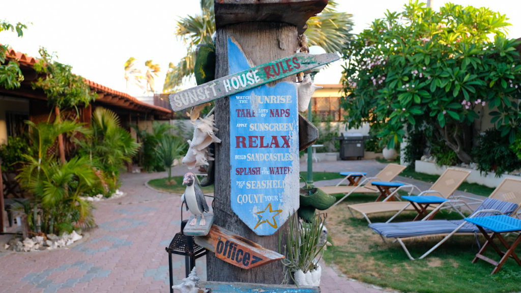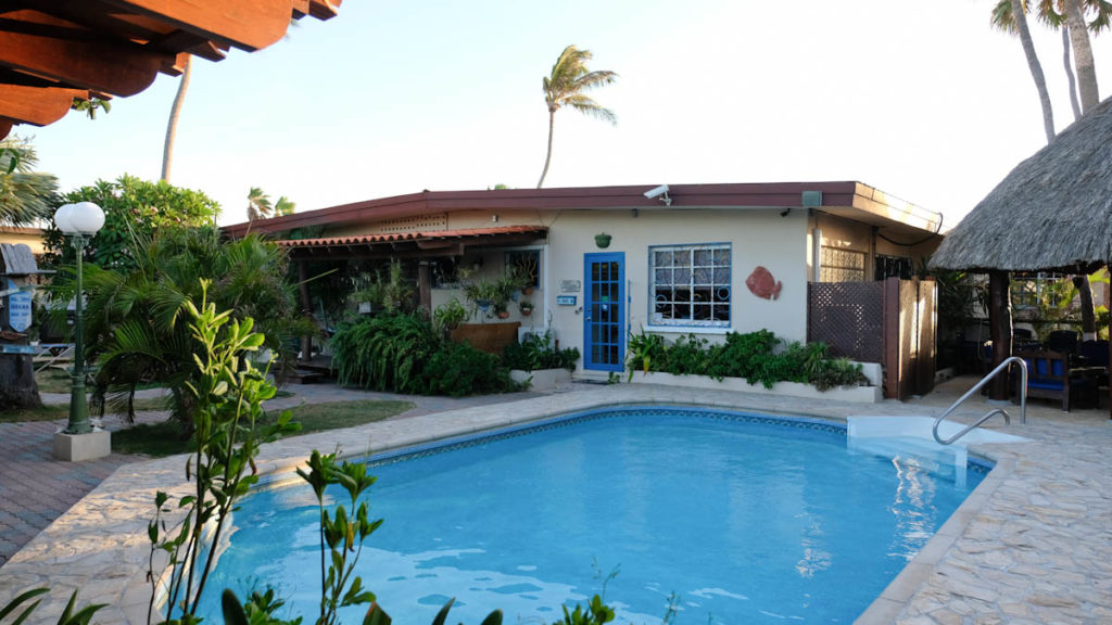 Entlang der Küste findet ihr zahlreiche Hochpreisige Hotels mit direkter Strandlage und traumhaften Stränden. Wer jedoch gerne etwas abseits Troubles entspannen möchte und eher etwas gemütliches sucht, dem empfehle ich die Aruba Sunset Beach Studios. Knapp 500 m vom Hadicurari Strand entfernt und damit von zahlreichen Geschäften und Restaurant sind die kleinen Apartments in einen kleinen tropischen Garten mit einem Pool angeordnet. Für einen Preis von ab 100$ pro Nacht findet ihr eine familiäre Atmosphäre und jede Menge Ruhe. Zweckmäßig mit einer kleinen Küchenecke eingerichtet, sind die Studios für Paare und Familien sehr gut geeignet. Entlang der Straße am Strand könnt ihr zudem jeden Morgen in beide Richtungen entspannt joggen.