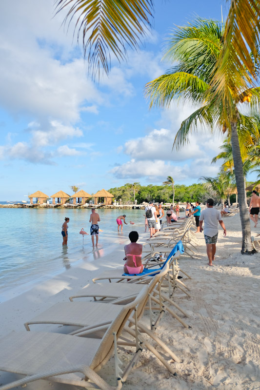 Viele warten bestimmt aus die bekannten Fotos der Flamingos aus Aruba. Ich möchte alle Leser bitten, diesen Punkt mit Vorsicht zu geniessen, denn diese schönen Tiere ( inzwischen auch nur noch fünf) sind hier eigentlich nur eine Hotel Attraktion und leben nicht in Freiheit ( sowie auf Bonaire). Die Flügel sind gestützt, damit die Flamingos den relativ übersichtlichen Strand (Renaissance Island) auf und ab laufen können und den Hotelgästen in der Tat als Fotomotiv dienen. Tiere gehören in die freie Natur und sollten nicht für Selfie Motive dienen. Wer das mit seinem Gewissen vereinbaren kann, der muss jedoch knapp 100 $ zahlen (sofern er kein Hotel Gast ist) um den Strand besuchen zu können. Für mich ist dieser Punkt daher kein Highlight.