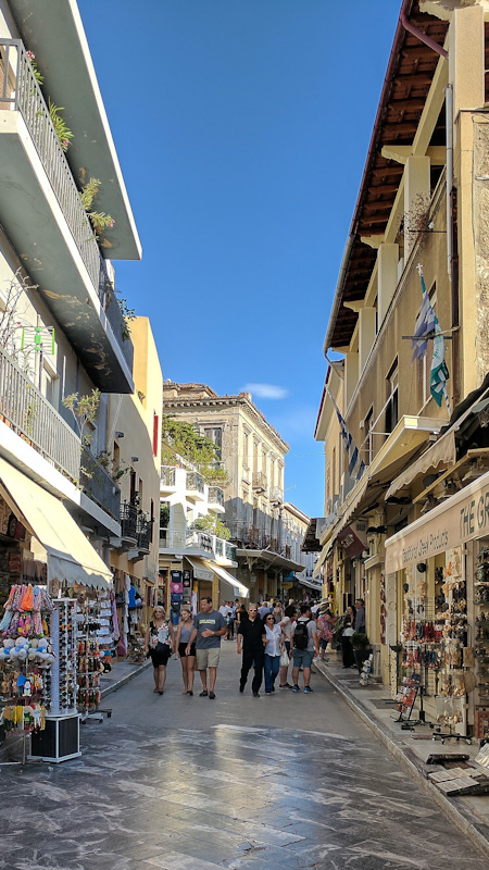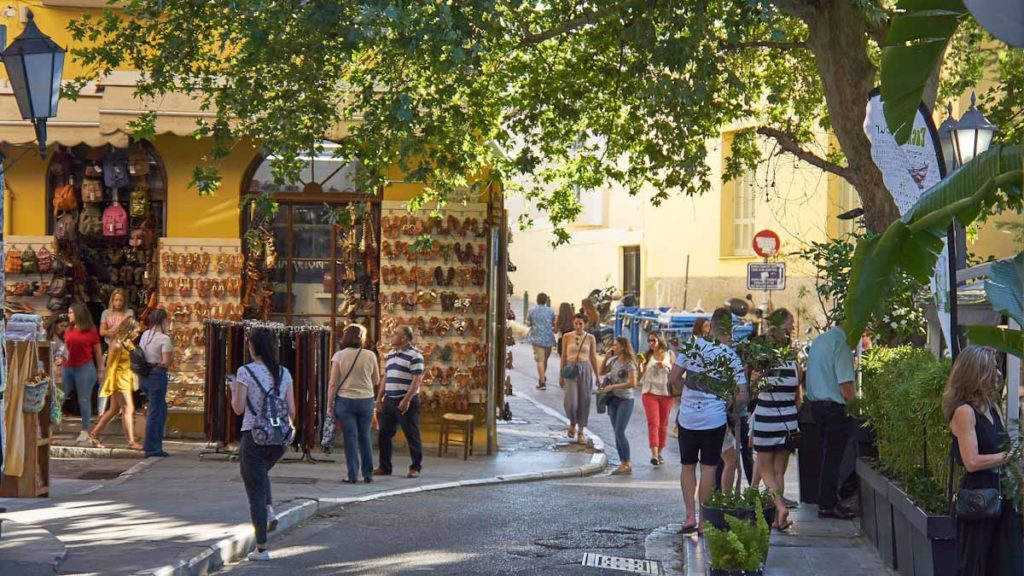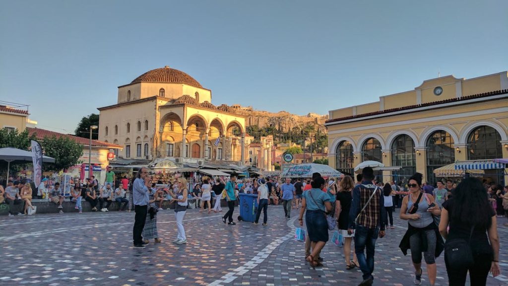 Der Monastiraki-Platz ist der zentrale Platz der Plaka. Hier kann man sich gemütlich hinsetzen und einfach nur die Menschen beobachten. Sonntags gibt es hier einen richtigen Flohmarkt und es gibt jede Menge zu sehen. Egal ob man nun zum Einkaufen in das Viertel kommt oder einfach nur zum Flanieren und Beobachten, die Atmosphäre und der Rhythmus ziehen die Einheimischen und die Besucher in ihren Bann.