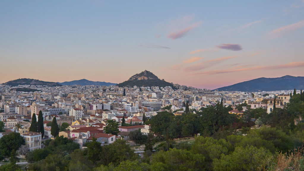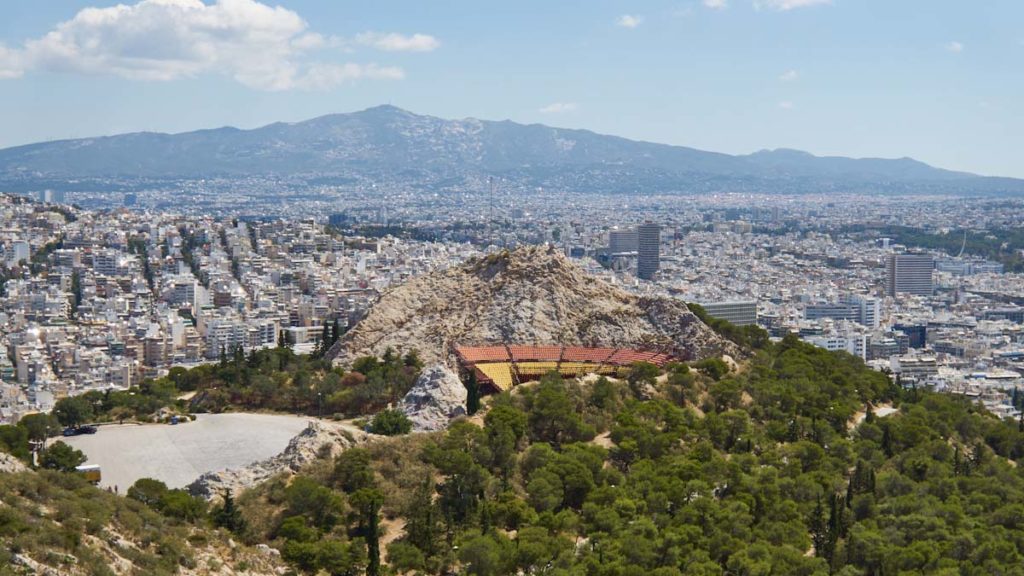 Dieser Aussichtspunkt ist ebenfalls ein Stadtberg Athens und mit 277 Metern die höchste Erhebung in der Stadt. Mit der Metro könnt ihr bis zur Station „Evangelismos“ fahren und von der bis zur Seilbahn laufen. Der Eintritt zur Seilbahn kostet 7€ und bringt euch jede halbe Stunde bis ganz nach oben. Neben der Seilbahn befindet sich jedoch ein kleiner Wanderweg, der kostenlos ist und ebenfalls nach oben führt.