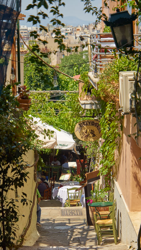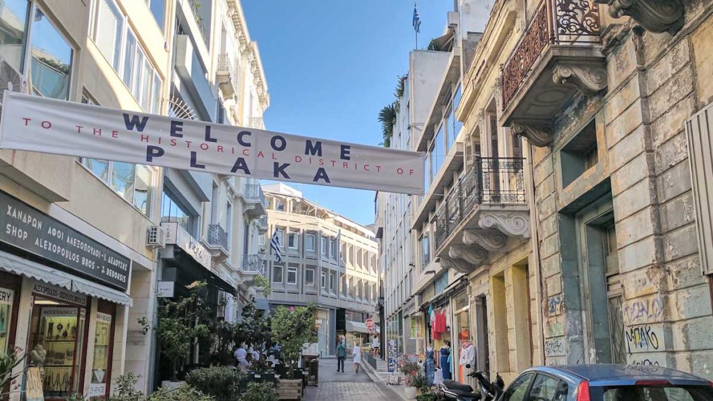 Plaka ist eins der ältesten Stadtteile Athens am Fuß der Akropolis. Monastiraki ist ein Teil der Plaka und das Flohmarktviertel der Stadt. Hier findet man zahlreiche Läden mit Antiquitäten, Ledersachen, Souvenirs und jede Menge Cafes und Tavernen.