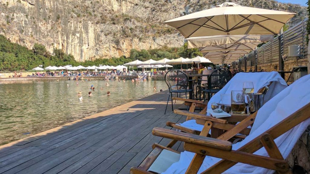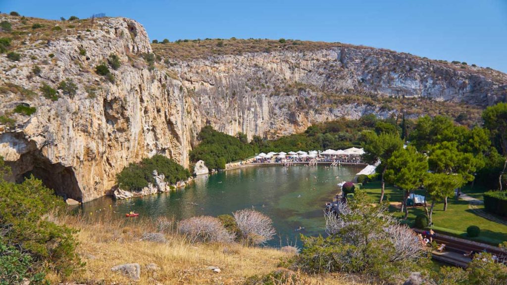 Wer sich richtig entspannen möchte, dem empfehle ich einen Tag am See. Nur 24 km von Athen entfernt könnt ihr hier für 12€ einen ganzen Tag im Kristall klaren See baden. Das Wasser des See weist eine konstante Temperatur von 22-27 Grad Celsius. Der See ist durch seine einzigartige Mischung unterschiedlicher Salze auch als Naturdenkmal gelistet und kann bei Hautkrankheiten, chronischen Rückenschmerzen oder Arthritis kleine Wunder bewirken.