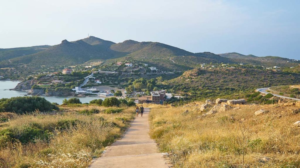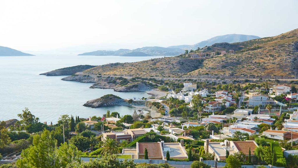 Entlang des Ägäischen Meers an wunderschönen Erhebungen und Küstenlandschaften fährt man in Richtung Kap Sounion entlang. Hier findet ihr kleinere Dörfer, kleinere öffentliche Strände und auch jede Menge Hotels. Die Fahrt dauert ca. 1 Stunde, je nach Verkehr und hier gibt es wirklich fantastische Aussichtspunkte auf dem Weg zu sehen.