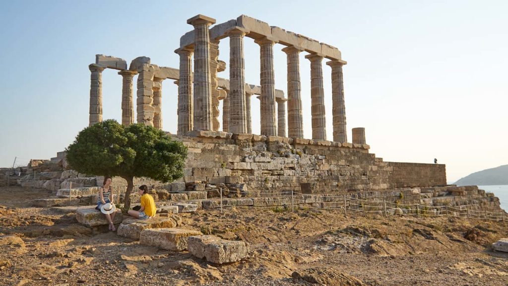 Der Poseidon Tempel befindet sich ca. 80km südlich von Athen am Kap Sounion. Ihr erreicht den Tempel entweder mit einem lokalen Bus, einer geführten Tour oder einem Mietwagen. Der beste Zeitpunkt für einen Besuch ist hier der früher Abend bevor die Sonne untergeht. Der Tempel steht auf einem felsigen Hügel über dem Ägäischen Meer und bietet eine malerische Aussicht über den Saronischen Golf.