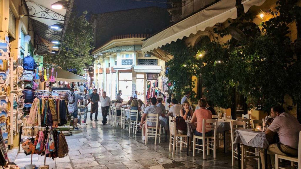 Im Zentrum von Athen im Stadtteil Plaka habt ihr die Qual der Wahl an Restaurants und Tavernen. Die Preise sind jedoch im Touristenviertel alle ähnlich. So zahlt man für einen Griechischen Salat ca. 5€ und für ein Gyros Gericht mit viel Tzatziki und Pita Brot ca. 9€.