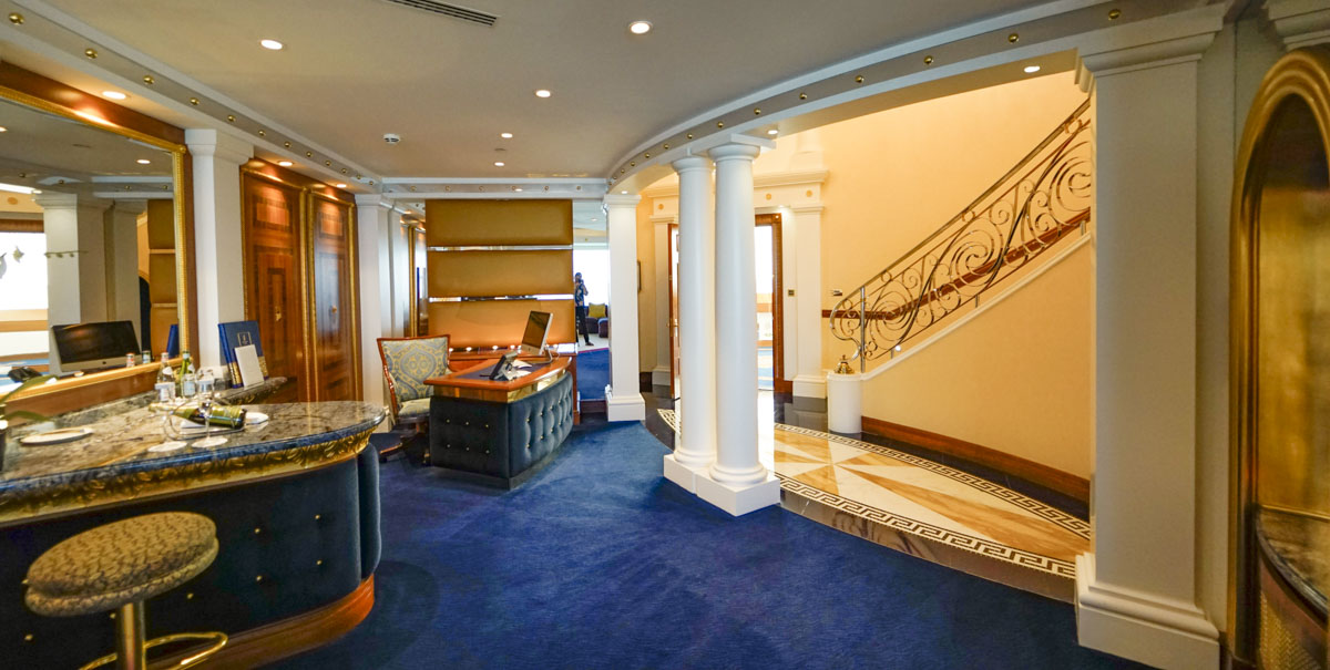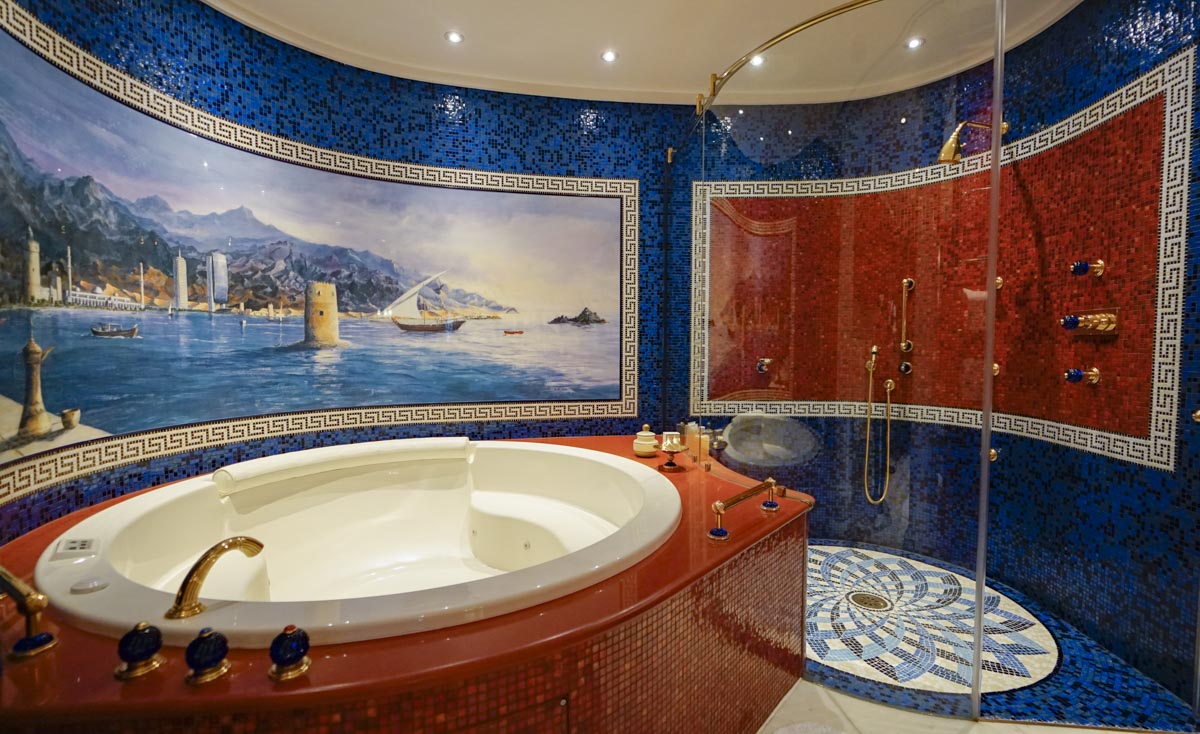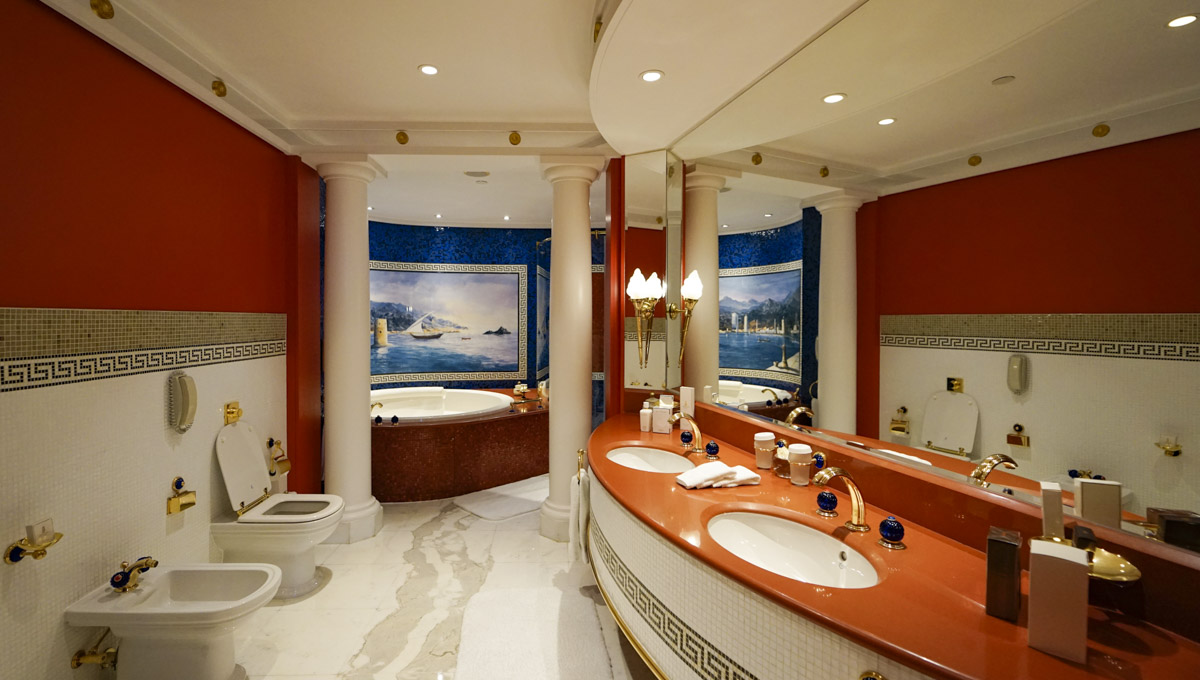 Luxuriöse Suiten mit bodentiefen Fenstern und Blick auf das Meer oder die Stadt. Alle Suiten sind mit iPads mit 24-karätigem Gold, kostenlosem WLAN, Flachbildfernseher und iPod-Dockingstation ausgestattet. Bettwäsche aus ägyptischer Baumwolle, hochwertige Toilettenartikel, ein Whirlpool und Butlerservice zählen zu den weiteren Annehmlichkeiten. Jede Etage verfügt zudem einen eigenen Concierge mit einem Service Desk. Das Design der Suiten wiederholt sich und die Farbkombinationen finden sich überall im Hotel wieder. Die goldenen Töne (echtes Gold) lassen die Suite wärmer wirken und verleihen dem Ambiente etwas königliches.