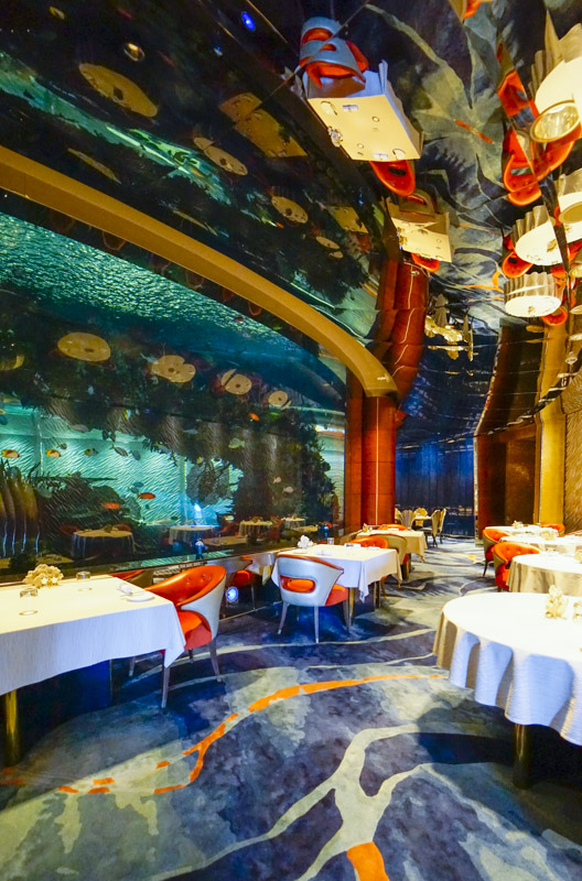erleuchtet durch den Schein enormer Meerwasser-Aquarien. Ab Herbst 2016 bringt der bekannte britische Küchenchef NathanOutlaw seine Seafood-Kreationen ins Al Mahara. Lokale, saisonale und nachhaltig produzierte Zutaten sind das A und O seiner Menüs, die größtenteils eigens für das Burj Al