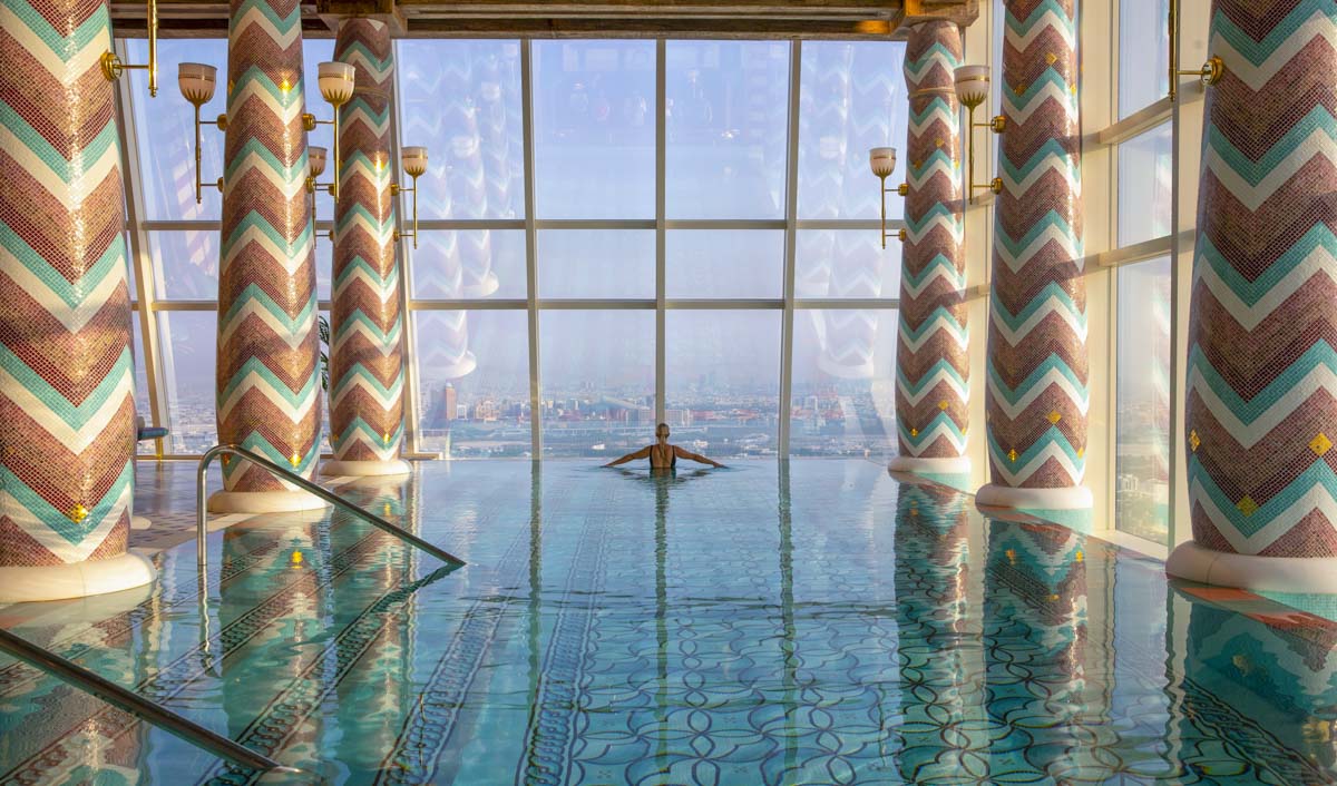 Al Muntaha („das Unübertreffbare“) liegt im 27. Stock des Hotels und bietet beste Sichtauf den Arabischen Golf – ebenso wie die Skyview Bar und die 2016 neu eröffnete BarGOLD ON 27, Treffpunkte der Stadt und bekannt für exquisiten Afternoon Tea und die besten Cocktails.