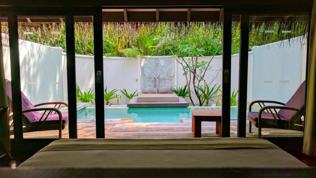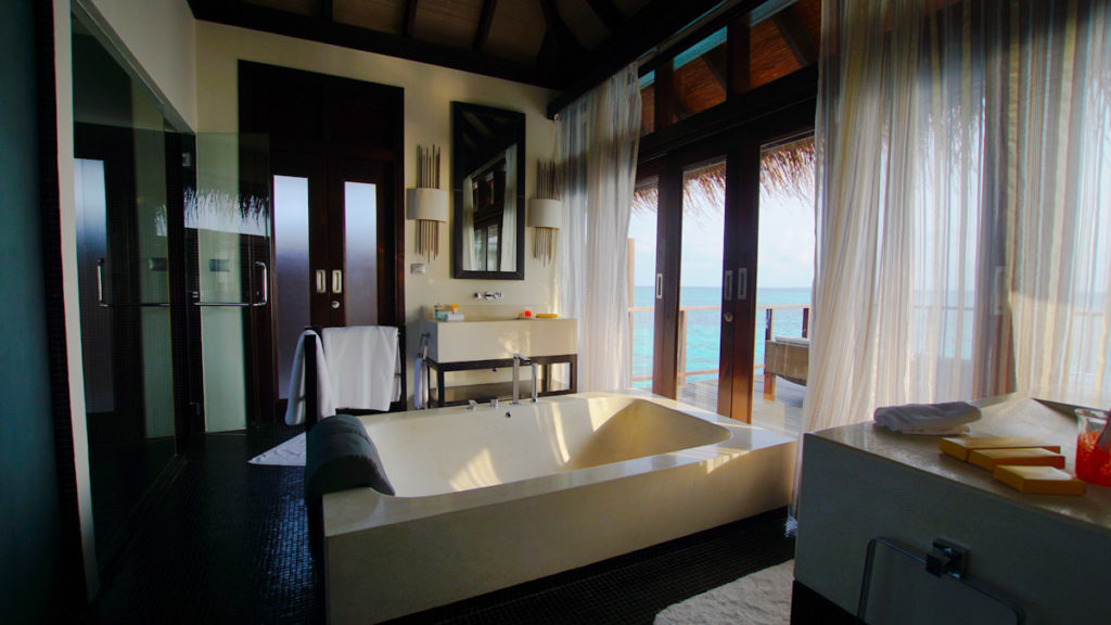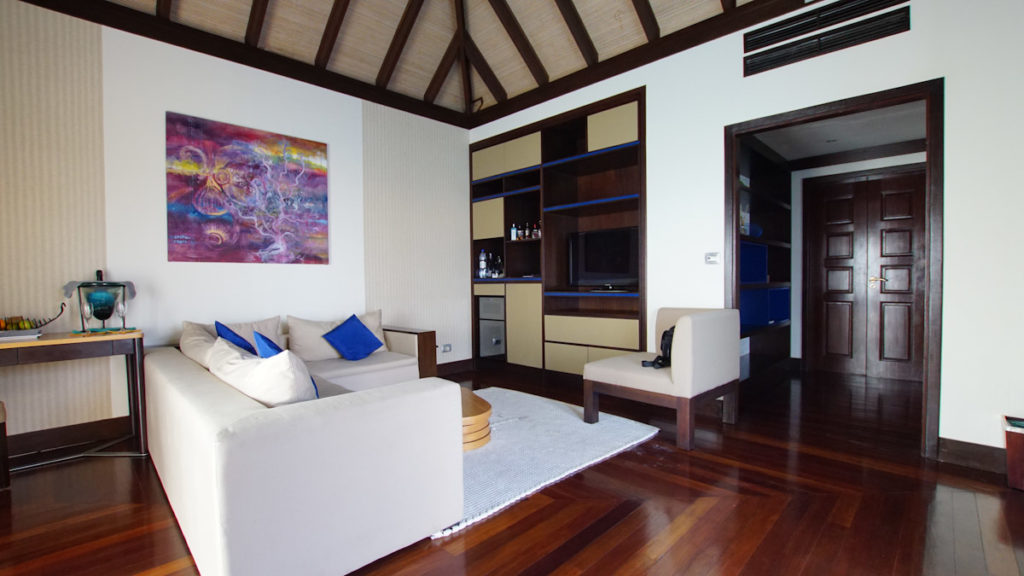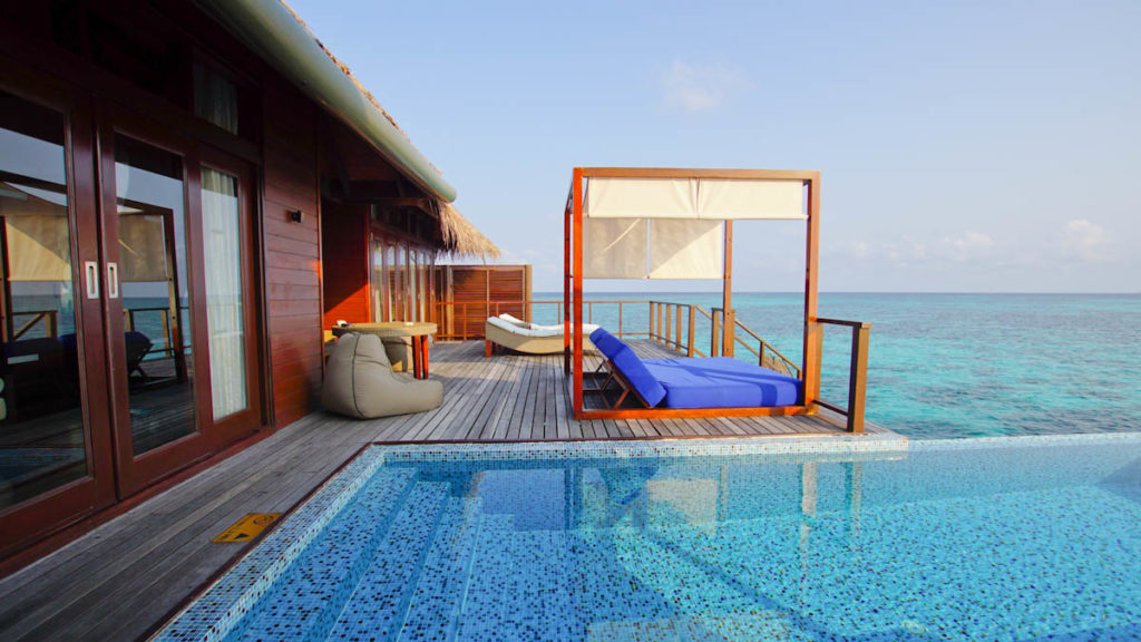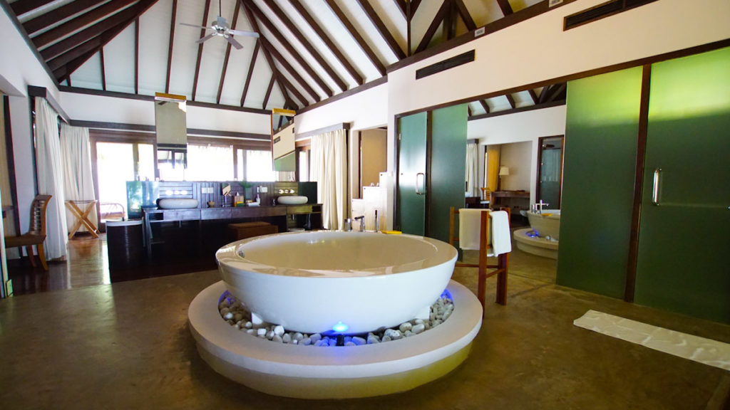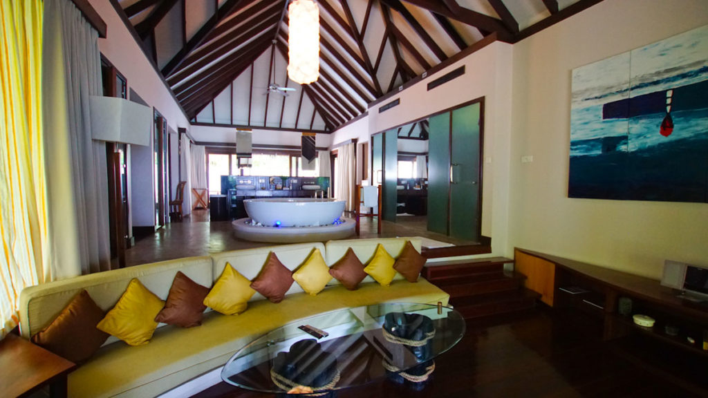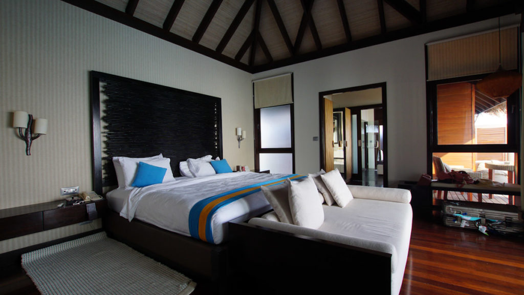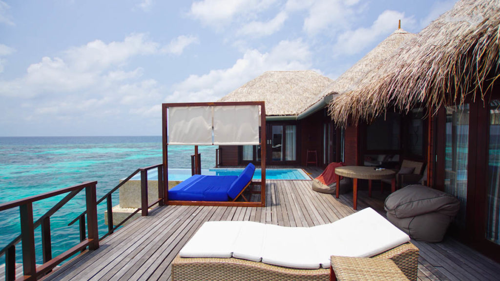 Die Wasservillen im Coco Bodu Hithi Resort sind offen und bieten daher mehr Sonnenstunden auf der Terrasse und die Gäste können über einen private Treppe sofort die Unterwasserwelt erkunden. Die Strandvillen sind eher von einem tropischen Garten umgeben und haben einen direkten Ausblick zum Strand. Insgesamt sind die Wege überschaubar und so erreicht man selbst von der letzten Wasservilla die Insel nach ca. 5 Minuten. Ein Spaziergang um die ganze Insel herum dauert knapp 15-20 Minuten. Viele verbinden mit dem Malediven Urlaub die tollen Wasservillen. Im Coco Bodu Hithi Resort sind die Strand Villen jedoch genauso luxuriös und durchaus von einigen Gästen beliebter als die Häuschen im Wasser.