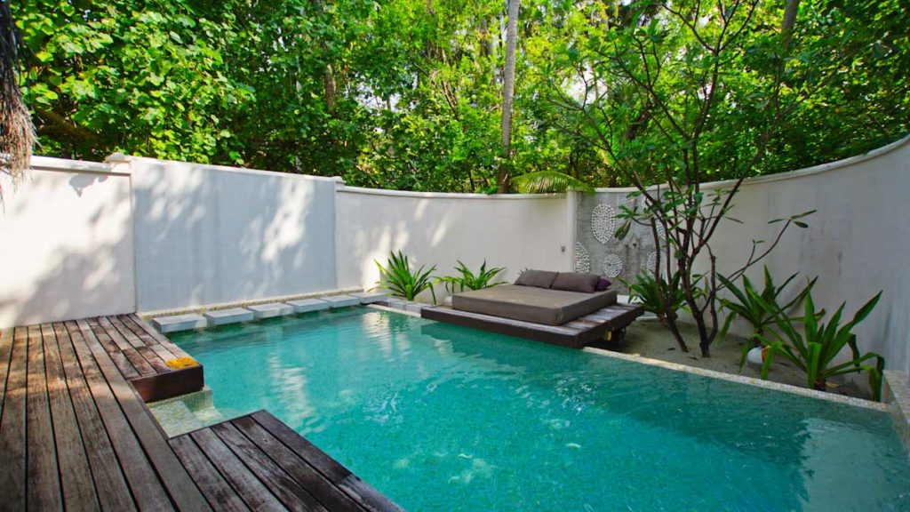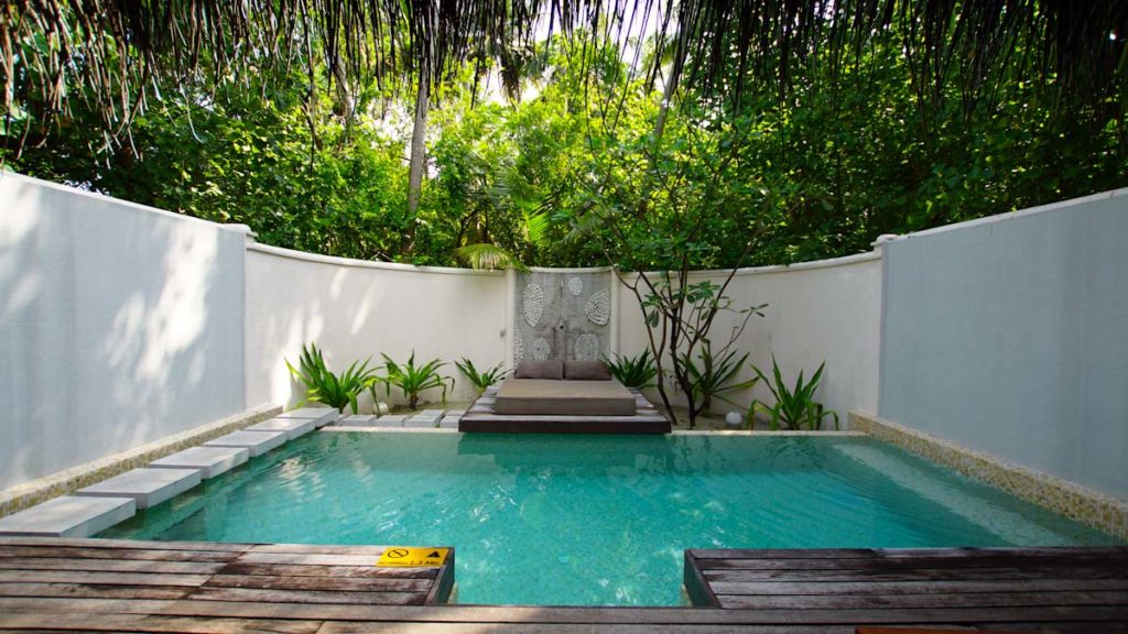 Die insgesamt 100 edel eingerichteten Luxus-Villen und Suiten unterteilen sich in vier Kategorien. Alle sind mit Klimaanlage, Ventilator, Tee- und Kaffeekocher, LCD/Plasma TV, DVD Player, Telefon, kostenfreiem WLAN und einem eigenen Pool ausgestattet. Die Villen sind nach einem offenen Konzept gestaltet und sehr elegant dekoriert. Sie kombinieren modernen Komfort und maledivischen Stil. Folgende Kategorien stehen dem Gast zur Verfügung :