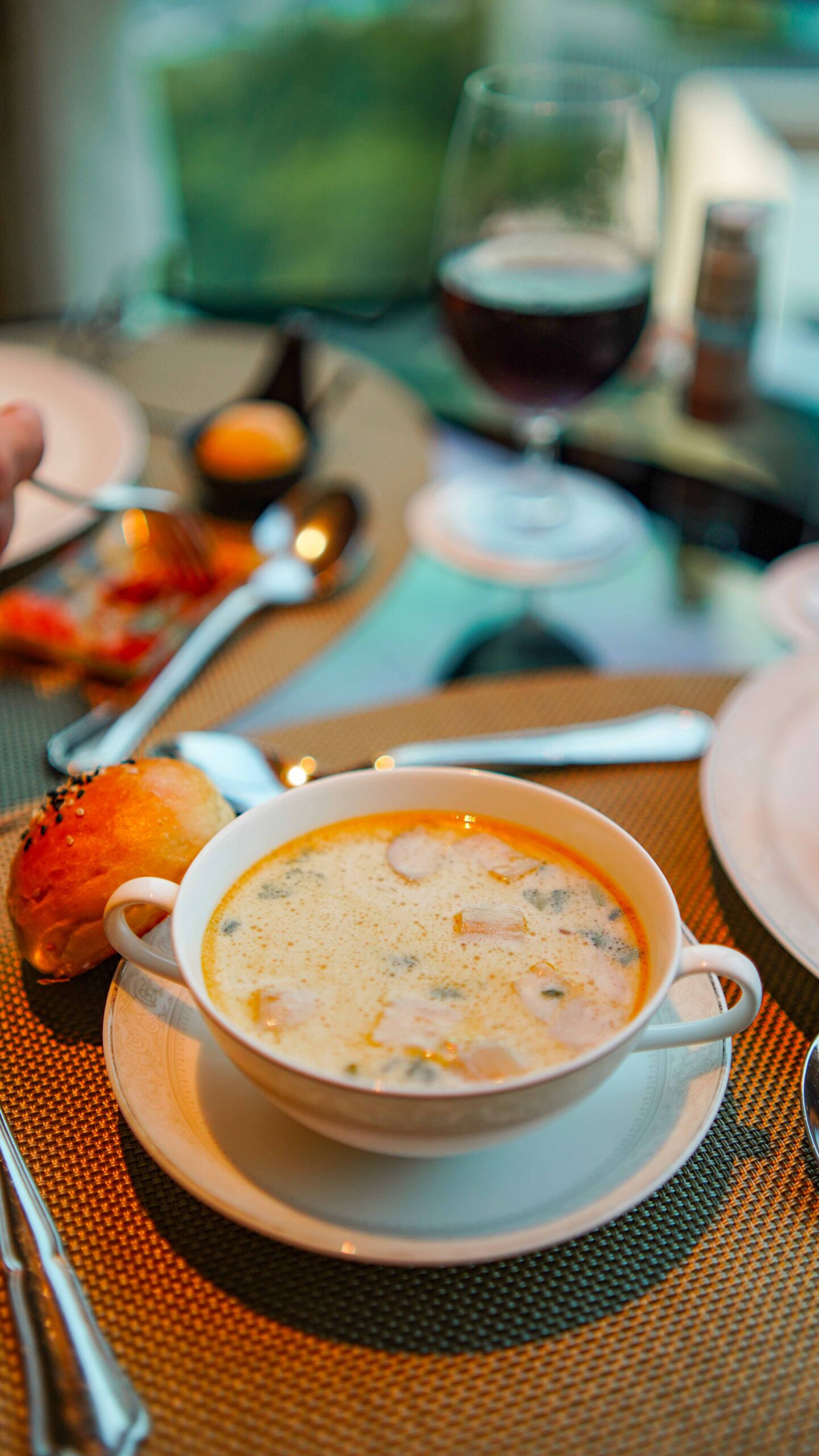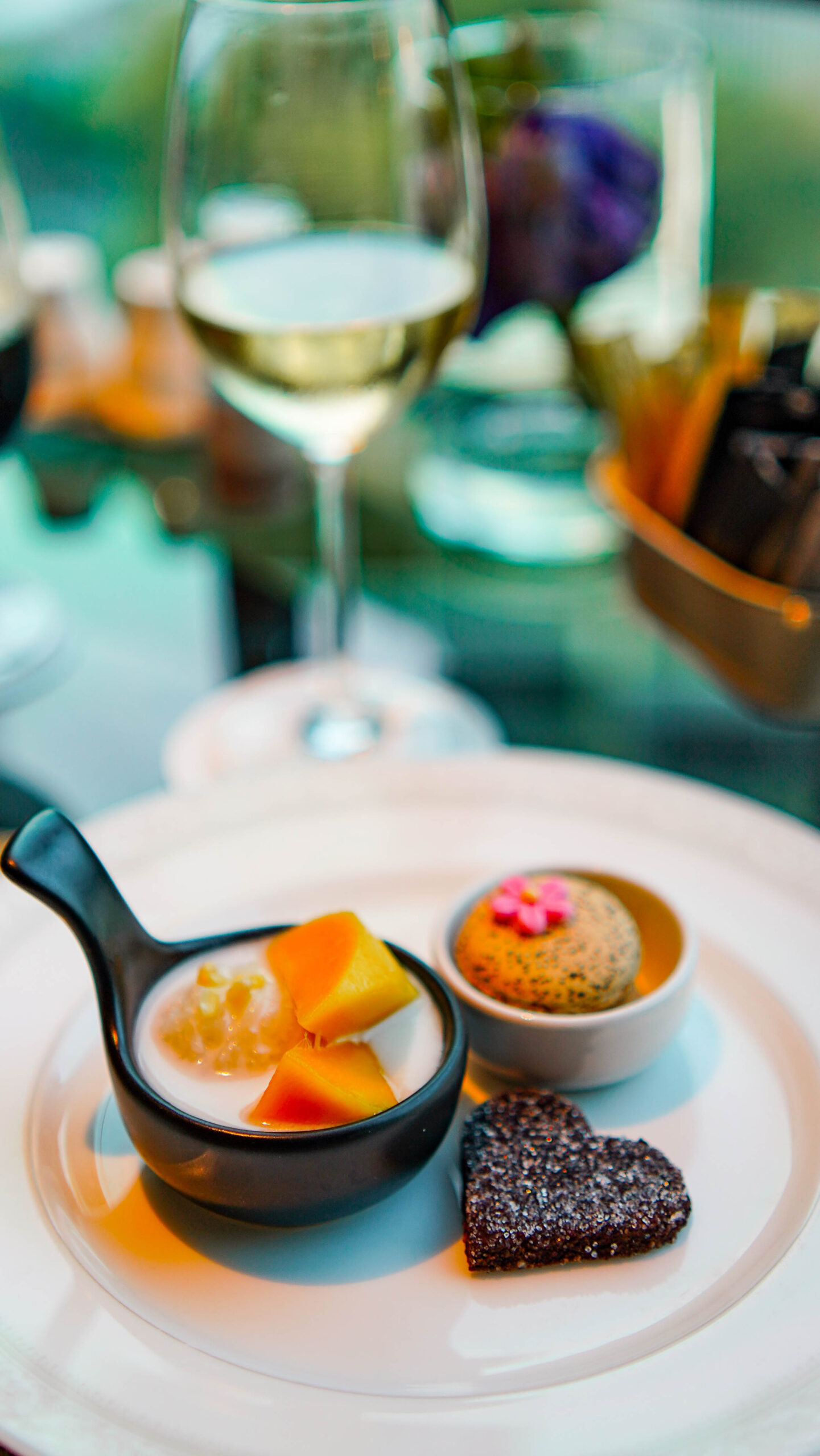 Eine Auswahl an Tagescocktails, Weinen und Champagner gibt es ab 17Uhr in der Lounge und bei dem Ausblick schmeckt es gleich noch viel besser. Die Lounge bietet genug Sitzmöglichkeiten, so dass es hier selten voll ist. Am Buffet bedient man sich selbst, während die Getränke an den Tisch gebracht werden. Kleine Häppchen, Suppen, frische Salate und Süssen findet man hier schön angerichtet und trotz der übersichtlichen Auswahl findet hier bestimmt jeder das Passende.