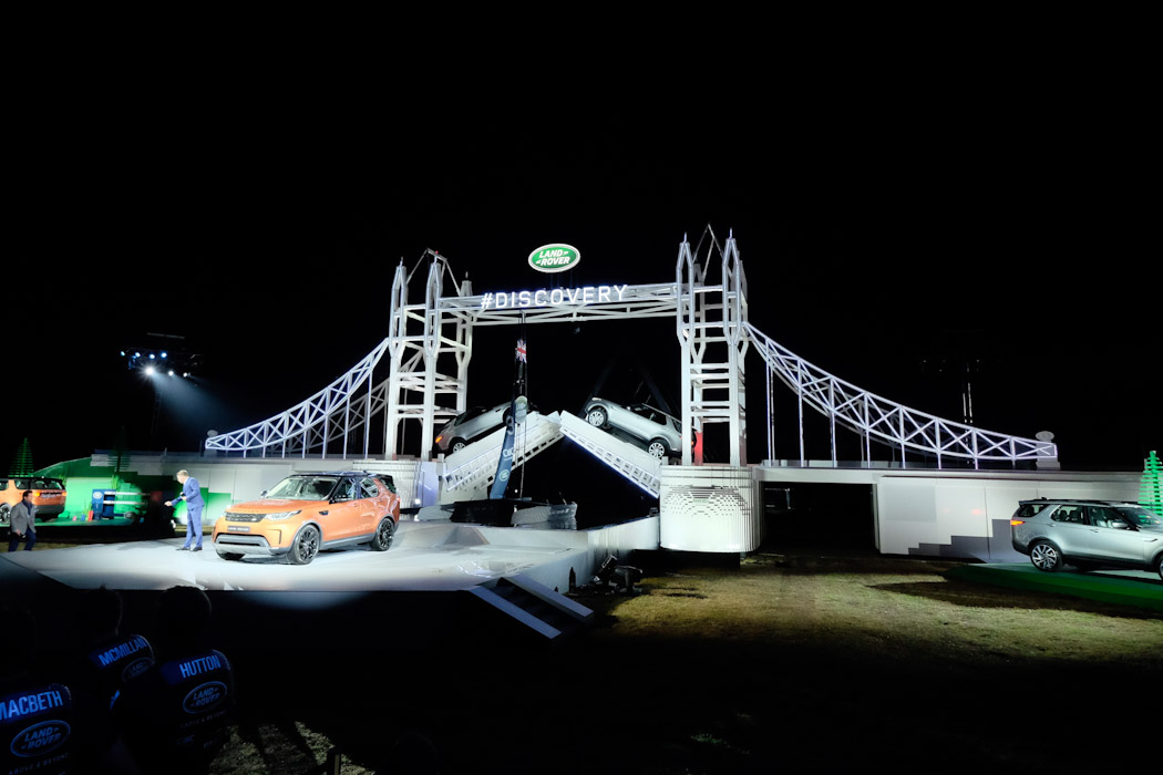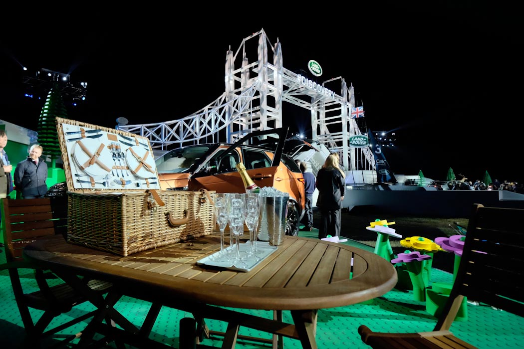 Im Garten von Packington Hall wurde in einer fünfmonatigen Arbeit aus 5,8 Millionen Legosteinen die Tower Bridge als Kulisse für die Premiere nachgebaut, damit wurde zeitlich noch ein neuer Lego-Weltrekord aufgestellt. Diese Nachbildung des Londoner Wahrzeichens diente jedoch nicht nur als Kulisse, sondern war mit ca. 13 Metern Höhe und einem Klappmechanismus der Brücke für die Vorführung des Land Rover Discovery gedacht.