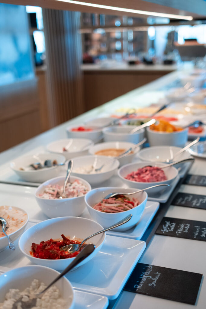 Gerade diese Verbindung aus Buffet und frisch bestellbaren Speisen hat uns sehr gefallen. So entsteht nicht das Gefühl, sich einmal schnell alles zu holen und fertig zu sein, sondern eher die Möglichkeit, den Morgen in Ruhe zu beginnen. Noch einen Tee, noch ein Blick nach draußen, vielleicht noch etwas Süßes oder etwas Herzhaftes. Es war ein Frühstück, für das man sich gern Zeit nimmt, vor allem wenn bis um 12:00 Uhr gefrühstückt werden kann. Und das ist bei einer Auszeit am Meer vielleicht wichtiger, als man im ersten Moment denkt.