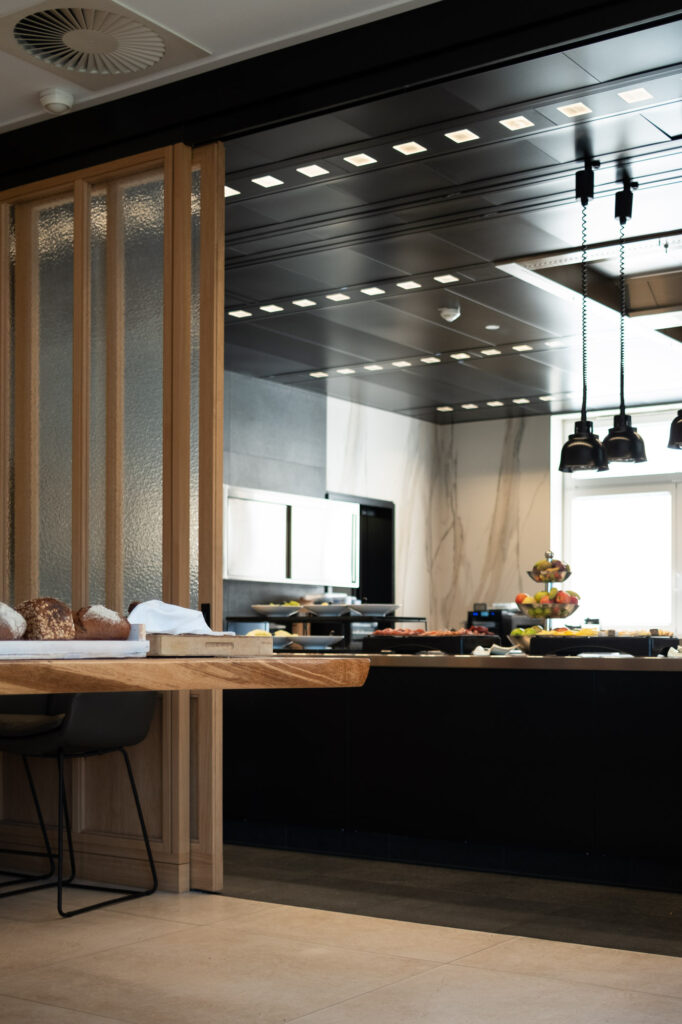 Das liegt vor allem daran, dass es sich nicht einfach um ein Kuchenangebot im Café handelt, sondern tatsächlich um eine eigene Patisserie im Haus. Laut Hotel werden die Kuchen und Torten dort mit natürlichen Zutaten direkt vor Ort hergestellt und täglich frisch von den Pâtissiers zubereitet. Gerade das macht den Unterschied spürbar. Man merkt, dass die süßen Komponenten nicht bloß mitlaufen, sondern ein eigenständiger Teil der Kulinarik sind. Die Patisserie wirkt wie eine bewusste Verlängerung des gesamten Hotelkonzepts. Ruhig, hochwertig und mit einem Sinn für Genuss, der nicht laut sein muss, um aufzufallen.
