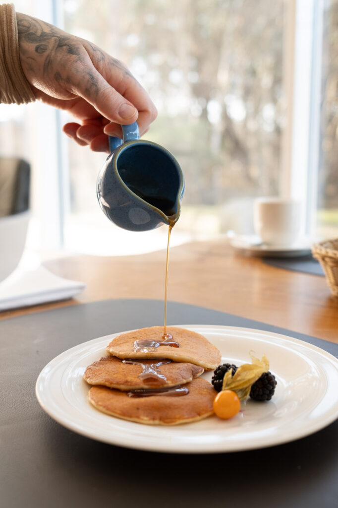 Die Auswahl im Strandhotel Dünenmeer war groß, wirkte dabei aber nicht beliebig. Statt Masse stand eher Qualität im Vordergrund. Es gab viele verschiedene Brote, frische Produkte, Aufstriche, Obst und eine Auswahl, bei der man merkte, dass sie mit Sorgfalt zusammengestellt wurde. Dazu kam, dass man zusätzlich warme Speisen bestellen konnte. Pancakes, verschiedene Ei Gerichte (Eier Benedict, Omelett und weitere), wurden frisch zubereitet und direkt an den Tisch gebracht.