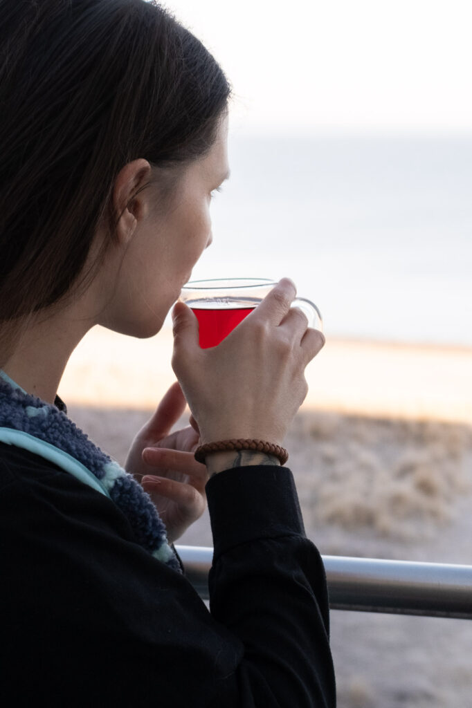 Für uns wurde sie schnell zu einem festen Teil dieser Auszeit. Nach einem langen Spaziergang am Strand, wenn der Wind noch in der Jacke hängt und die Hände langsam wieder warm werden, fühlt sich eine heiße Schokolade mit einem Stück hausgemachtem Kuchen plötzlich nach deutlich mehr an als nur nach einer kleinen Pause.