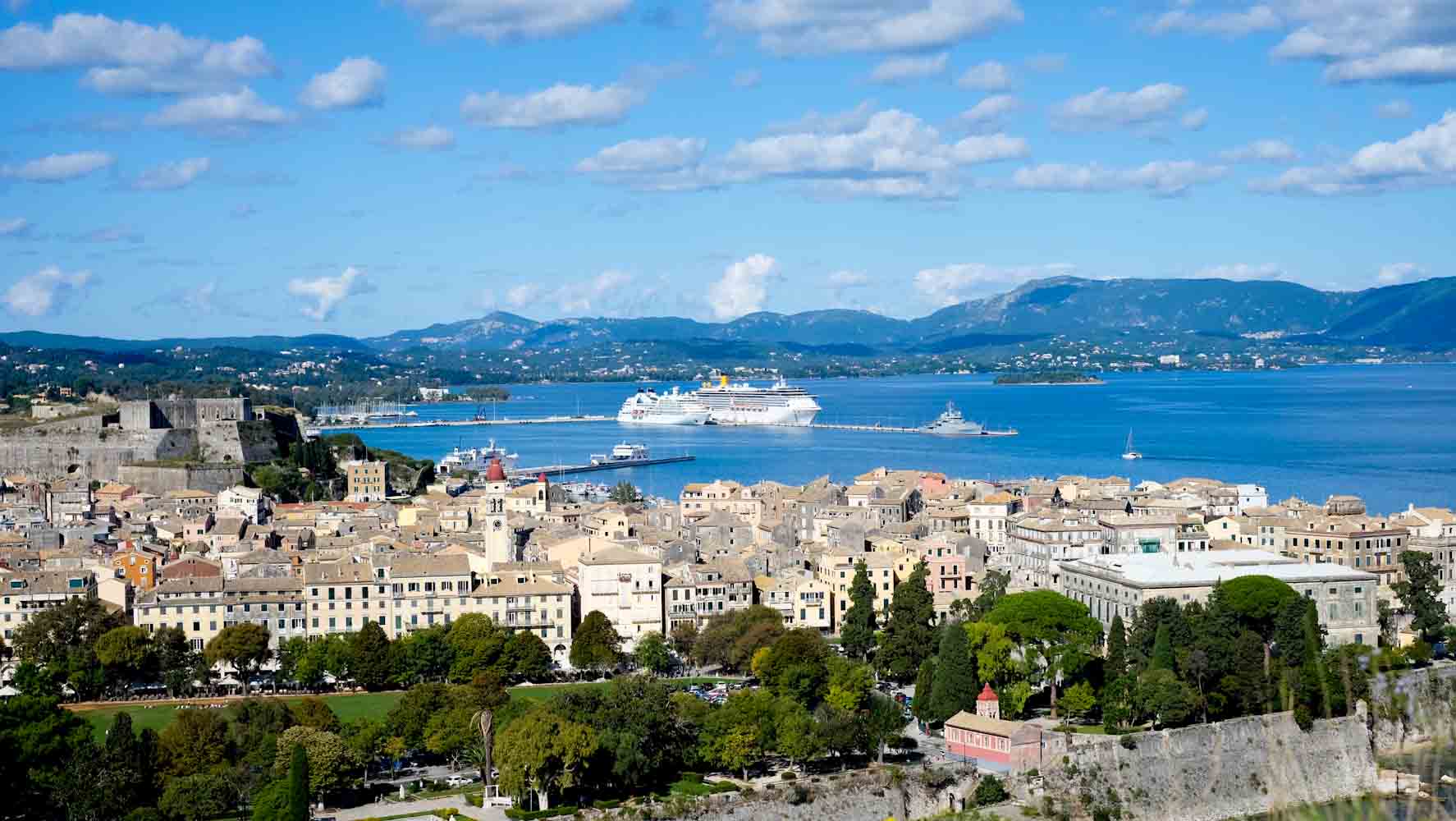 Eins der bekannteren Ziele ist Korfu und so bin ich auch hier sehr gespannt was mich hier erwarten wird. Vom Hafen gibt es einen Shuttle direkt in das Zentrum, welches nur wenige Fahrtminuten entfernt ist. Die Stadt ist groß und lebt im inneren. Viele bunte Gassen und nochmehr Geschäfte , die einen längeren Aufenthalt versprechen. An jeder Ecke bekommt ihr Griechische Leckereien und natürlich jede Menge Olivenöl. Ich laufe gemütlich an den Geschäften vorbei und nehme die ersten Souvenirs mit. Nach knapp zwei Stunden geht es entlang der Küste an vielen Tavernen und einer fantastischen Aussicht zurück zum Hafen. Korfu ist sehr groß und so reicht die Zeit nur für einen kleinen Einblick, der mir jedoch ausreicht um zu wissen, dass ich hier nochmal wiederkommen möchte.