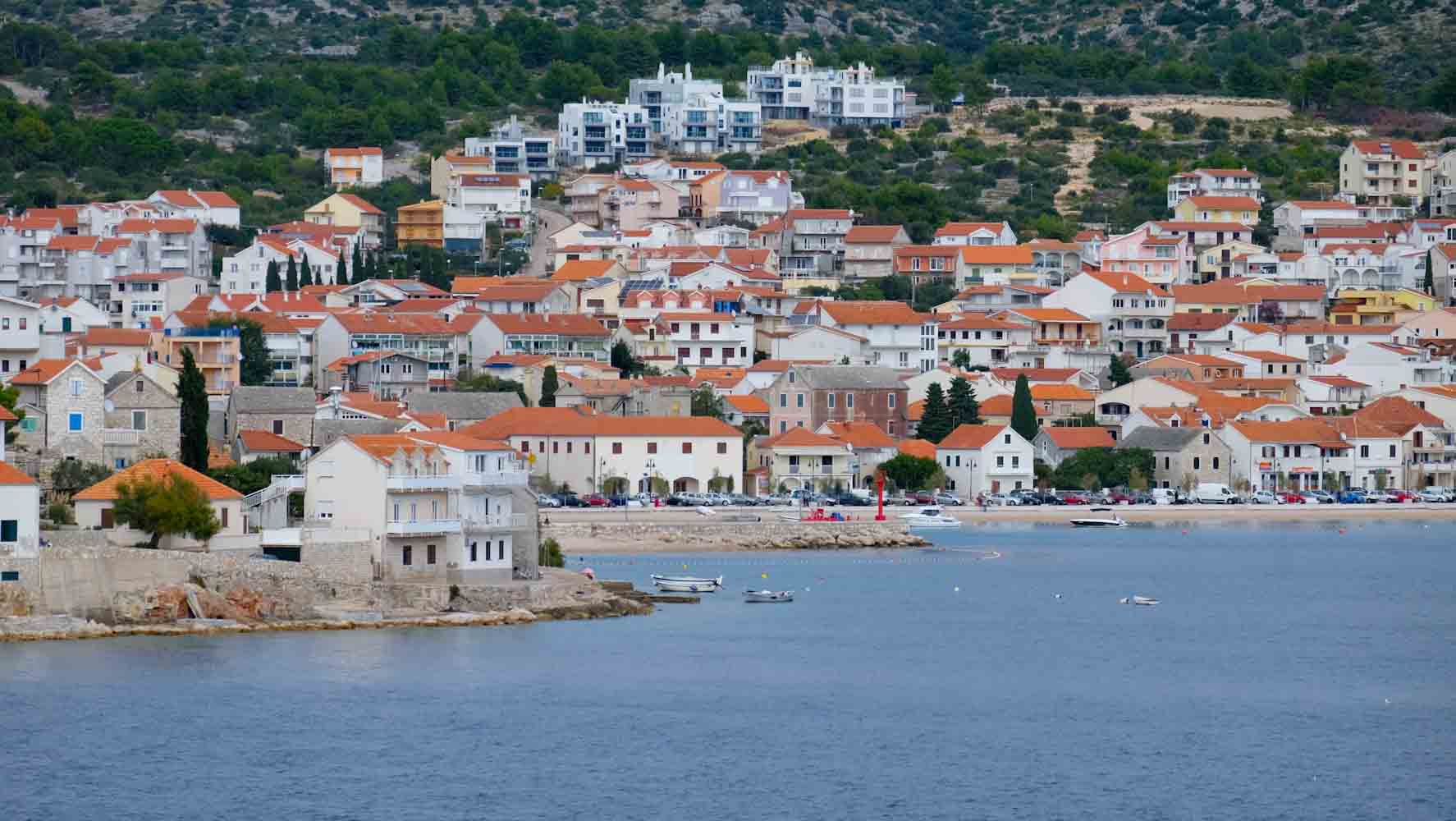 Dieses kleine Örtchen sieht schon von Weitem malerisch aus. Viele kleine weisse Häuschen prägen hier die Insel in Kroatien und entlang der Küste kann man einen erholsamen Spaziergang machen.
