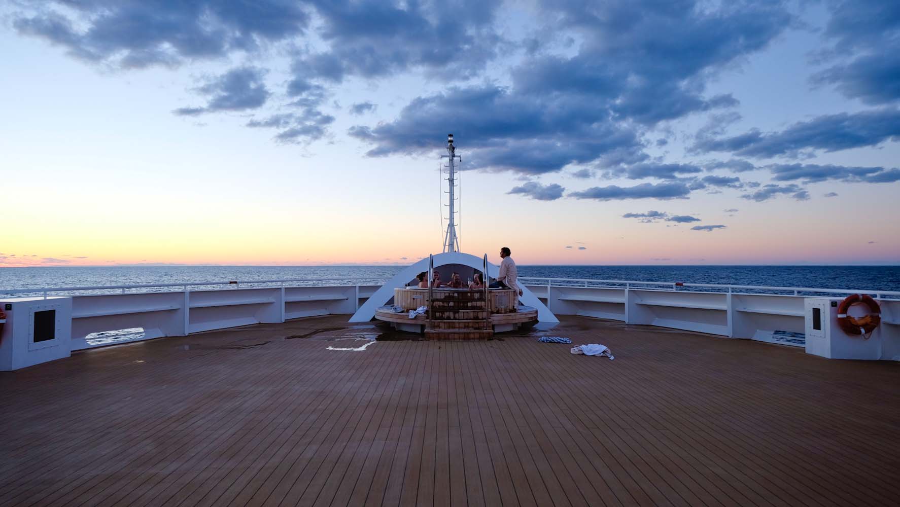 An Deck 5 gibt es einen weiteren Pool und zwei Whirlpools, die gelegentlich meinen Arbeitsplatz ersetz haben, da man hier gemütlich die Sicht auf das freie Meer geniessen kann. Selbstverständlich gibt es auch hier einen regulären Service, den ihr ebenfalls kostenfrei nutzen könnt. Es ist teilweise schwer zu beschreiben, wie sich das anfühlt, wenn das Schiff fährt und nur die Wellen zu sehen sind und der Ausblick durch nichts gestört wird.