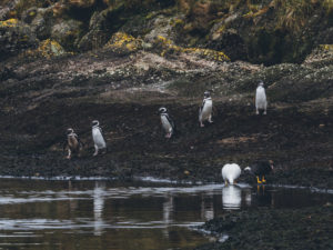 Später, zurück auf dem Schiff, versuchte ich mich etwas aufzuwärmen, denn trotz Frühling, fühlt es sich an wie Winter bei uns in der Stadt. Deswegen als kleiner Tipp an alle, die solch eine Reise in Erwägung ziehen: viele, viele warme Klamotten einpacken! Nach dem Mittagessen begann die selbe Tortour wieder, Rettungsweste an, auf die Boote und auf zu den Tucker Inseln um dort die süßen Magellanpinguine und Kormorane zu beobachten. Fun Fact: Zu dieser Jahreszeit bewohnen nur männliche Magellanpinguine die Inseln, damit diese die Neste bauen, um etwas später im Jahr die Weibchen begrüßen und ihrer Artenerhaltung nachgehen zu können.