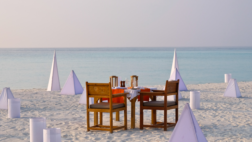 Die Auswahl der Restaurants auf der Insel ist übersichtlich, den insgesamt gibt es nur drei Restaurants und einen eigenen Kräutergarten. Auf der Insel erwartet die Gäste das vorzügliche Hauptrestaurant (Kashiveli) mit internationalen Gerichten und Barfuß Atmosphäre mit einem paradiesischem Ausblick. Vier Mal in der Woche verwandelt sich dieses in einen kulinarischen Markt mit Asiatischen und Europäischen Leckereien. Das „By the Sea“ serviert japanisch-peruanische Küche und Sushi sowie erlesene Weine. Die „Over Water Bar“, direkt über der Lagune, bietet Lunchbuffet sowie leichte Gerichte am Abend mit Blick auf den Sonnenuntergang. Mittags kann man im „Organic Garden“ ein gesundes Lunch mit frischem Gartengemüse auf Wunsch geniessen. Der „360degree table“ erhebt sich 3 Meter über dem Garten und empfängt die Gäste am Abend (Reservierung erforderlich). Ein weiteres Highlight ist der speziell angelegte (gut gekühlte)Weinkeller des Resorts mit Spitzenweinen aus mehr als 30 Regionen der Erde, dazu kleine Leckereien wie selbstgemachte Schokolade und exklusivste Käsesorten. Für eine Abkühlung sorgt das selbstgemachte Eis in der am Pool gelegenen Bar „Fini Foni“