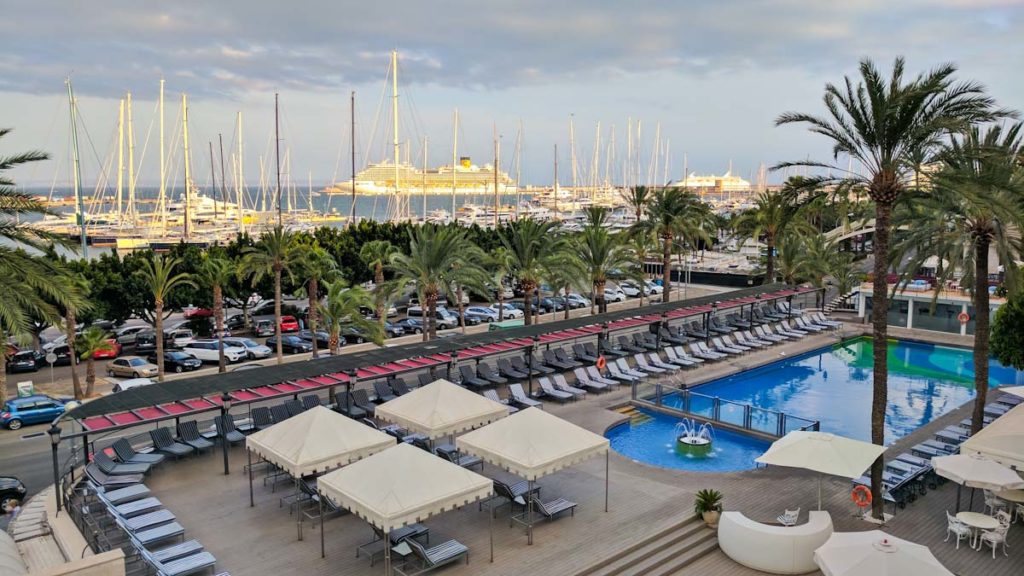 Vom Flughafen Palma de Mallorca erreicht man das Hotel nach knapp 15 Minuten Autofahrt und befindet sich zugleich am bekannten Hafen und nähe der Kathedrale. Das Hotel ist durch eine Promenade vom Hafen getrennt und bietet den Gästen zahlreiche Möglichkeiten zum Einkaufen und viele gehobene Restaurants. Auch bekannte Clubs und Bars sind fussläufig erreichbar. Bei einem mehrtägigen Aufenthalt empfiehlt sich grundsätzlich ein Mietwagen. Das Hotel ist jedoch sehr gut gelegen, so dass man kleinere Ausflüge mit dem öffentlichen Bus machen kann. Für ca. zwei Euro kann man in beide Richtungen die Stadt erkunden und erreicht nach wenigen Stops auch das Zentrum.