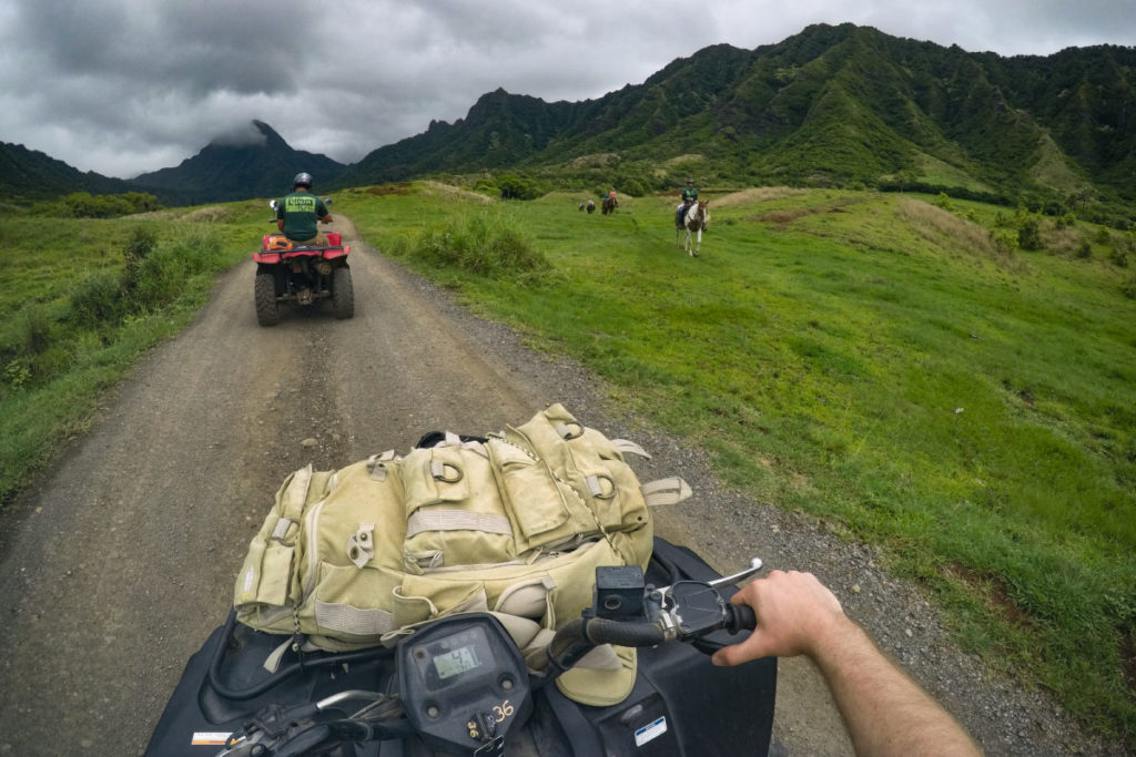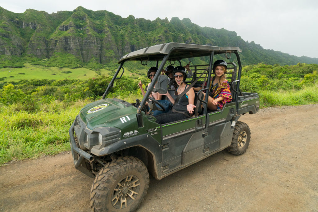 Am Nachmittag haben wir uns dann zur Kualoa Ranch aufgemacht, die vor allem für alle Jurassic Park Fans eine must-go Destination sein sollte! Gemeinsam mit einem Guide haben wir hier das grüne Tal auf Quads und in einem Raptor erkundigt. Ein Zwischenstopp führte uns auch zu den Knochen und einem Schädel aus dem Film „Kong: Skull Island“.