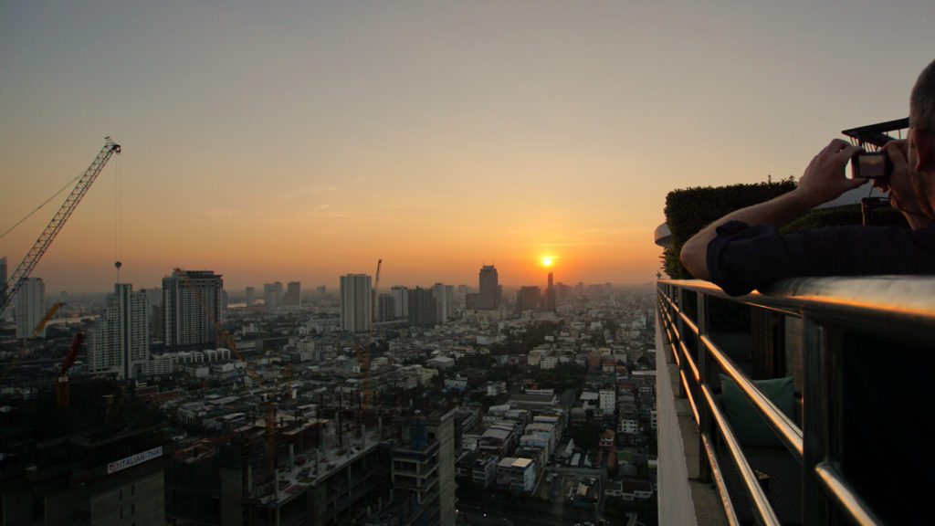 Die Dachterrasse lädt nicht nur zu romanischen Sonnenuntergängen ein, sondern auch zu einem leckeren Cocktail am Abend. Dieser Ausblick über Bangkok ist definitiv ein Highlight und lässt nur erahnen wie groß diese Stadt ist. Schade ist wirklich nur, dass diese nicht die ganze Nacht geöffnet ist, aber wahrscheinlich würden sonst die Gäste nicht zum Schlafen kommen.