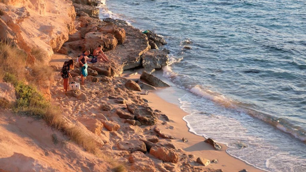 Naturnahe aber nicht unbedingt einsame Sonnenuntergänge können an den Stränden Platges de Comte (Cala Conta) und Benirràs bewundert werden. Vom Platges de Comte aus kann der Sonnenuntergang über den vorgelagerten Inseln bewundert werden. Am Benirràs hat sich ein Kult rund um den Sonnenuntergang gebildet. Hier trifft man einige Hippies und an Sonntagen versammeln sich am Strand auch Trommler. Ein Besuch in der angesagten Bar (Restaurant) „Sunset Ashram“ ist hier aber sehr empfehlenswert. Nicht nur leckere Cocktails und köstliches Essen warten auf euch, sondern ein atemberaubender Ausblick.