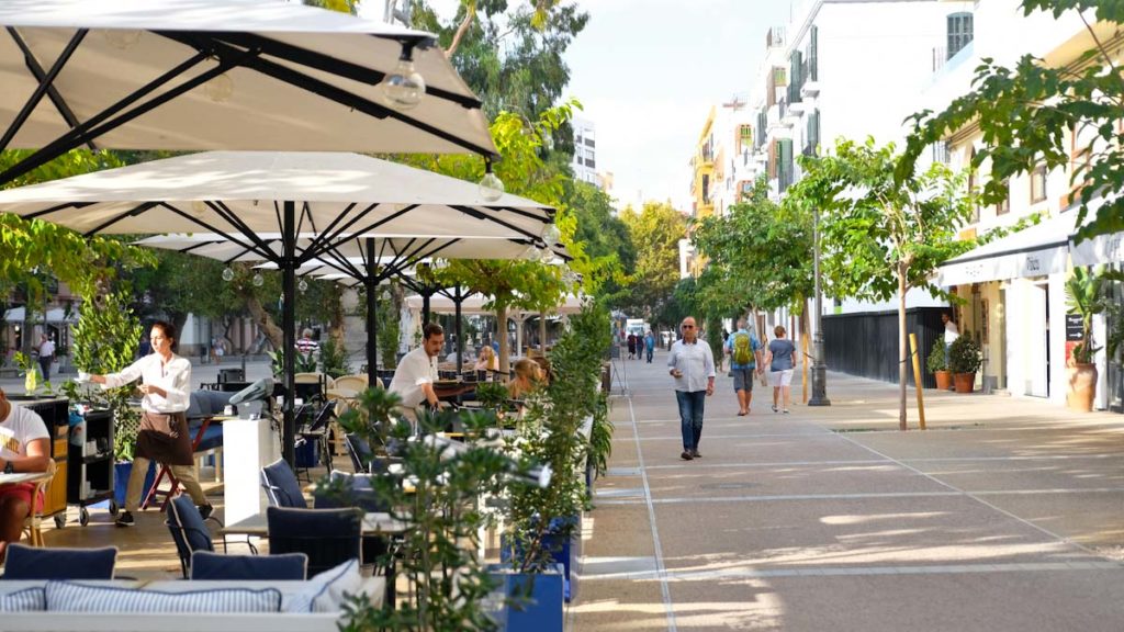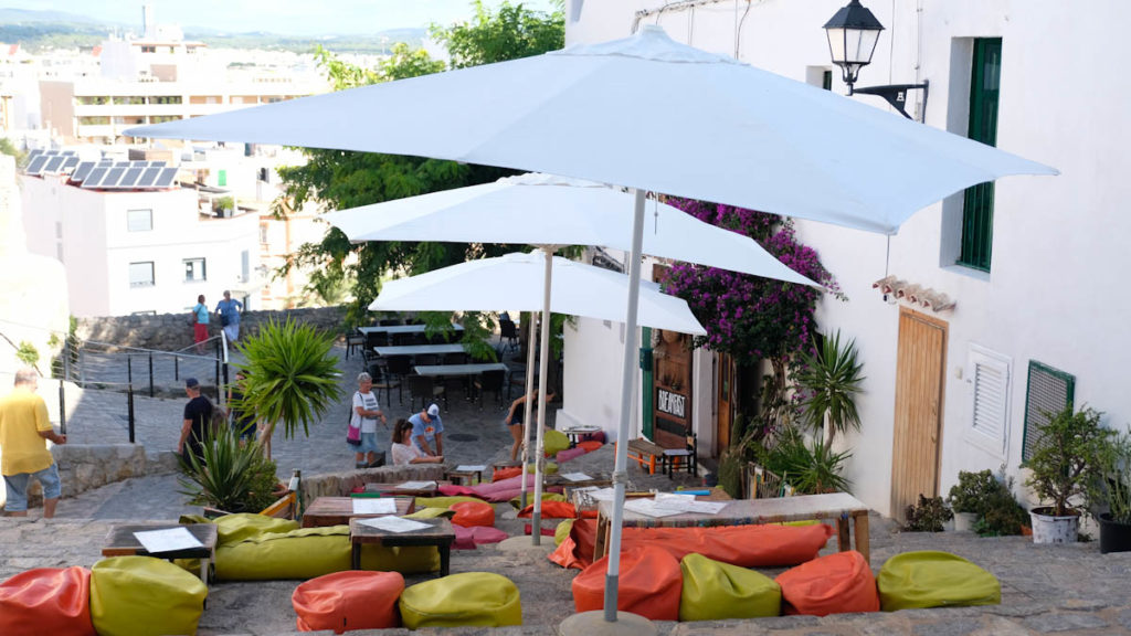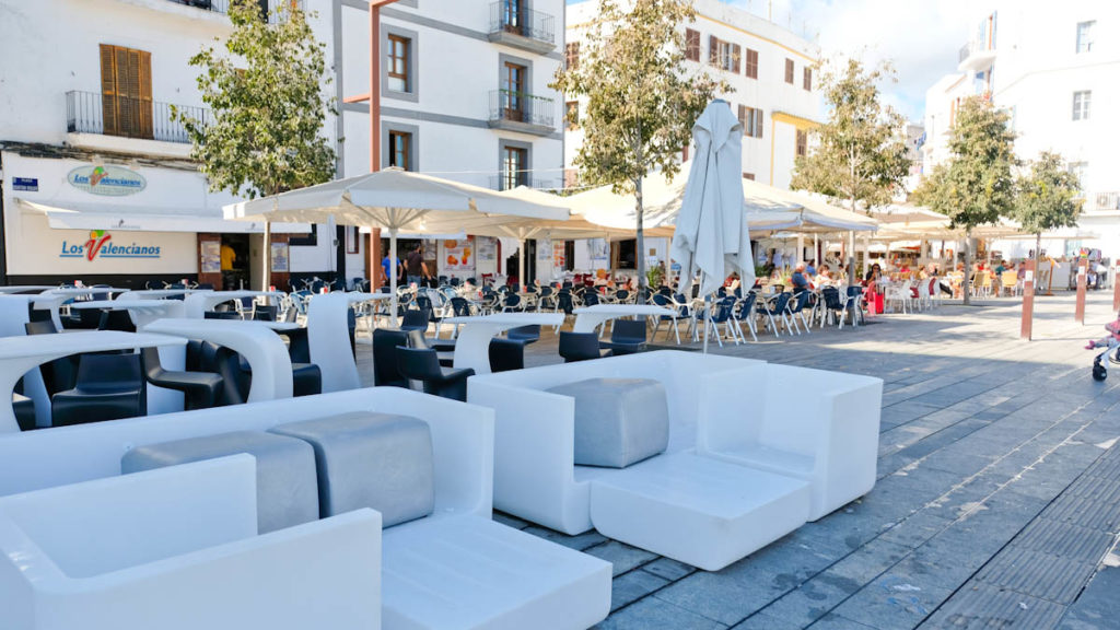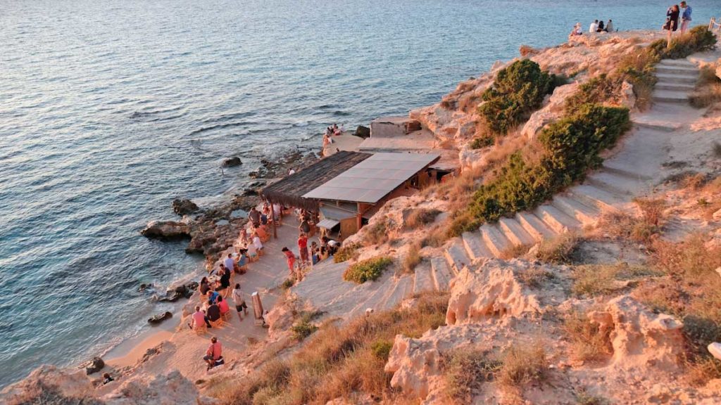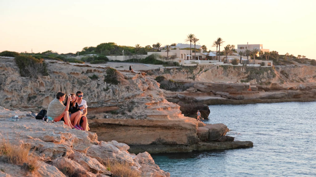 Der Sunsetstrip in Sant Antonio mit seinen Bars ist ein beliebter Ort um Sonnenuntergänge zu bestaunen. Hier wird es zur Zeit des Sonnenuntergangs voll, in den Bars läuft entspannte House-Musik und Künstler verkürzen die Wartezeit bis zum Sonnenuntergang.