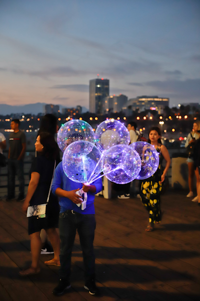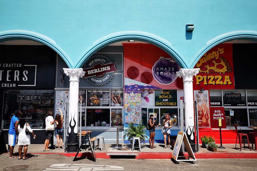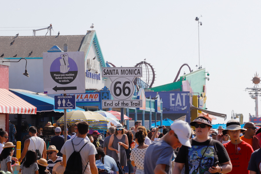 Der Bord Walk ist die Promenade am Strand mit zahlreichen Souvenirläden und Verleihgeschäften. Insgesamt sind es schon ein paar Kilometer am Strand, die man hier zurücklegen kann, daher habe ich mir als erstes einen Elektroroller gemietet. Hier in Los Angeles (wie fast überall in den USA) wird fast alles bargeldlos abgewickelt. Die Roller werden ganz einfach über eine App gemietet – auch hier musste ich nur die Daten der VISA Karte eingeben und konnte innerhalb von 2 Minuten losfahren. Selbstverständlich gibt es auch einige Geschäfte wo ihr euch einen Roller oder ein Fahrrad für eine längere Zeit mieten könnt. Interessant sind jedoch die neuen Mietstationen für die Fahrräder. Hier müsst ihr nur eure VISA Karte reinstecken und schon öffnet sich das Schloss vom Fahrrad. Einfacher geht es wirklich nicht mehr. Wenn ich mir vorstelle, dass ich erst die Promenade nach einem Automaten absuchen muss, der im besten Fall nicht funktioniert, dann bin ich über diese Variante sehr froh.