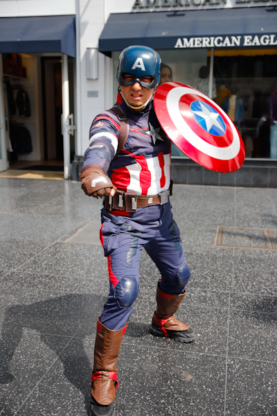 Der Hollywood Boulevard zählt in Los Angeles zu den Highlights, die man gesehen haben muss. Nicht nur der bekannte „Walk of Fame “ mit den Sternen der Stars, sondern auch die kostümierten Filmstars sind hier ein Hingucker. Selbstverständlich ist hier aber auch nichts umsonst und selbst der „Captain America“ oder „Chewbacca“ möchten für ein Souvenirfoto eine kleine Spende. Nett gefragt stehen sie gleich für ein Foto bereit und halten die Hand für ein paar Dollar auf. Ich war sprachlos als Wolverine und Spiderman mir anboten die Spende mit einer VISA Karte abzuwickeln. Tatsächlich haben die Filmmaskotchen entweder unter ihrem Umhang oder in einer Tasche ein Kartenlesegerät. Darth Wader hat sein Kartenlesegerät einfach in sein Kostüm als Accessoire eingefügt. Ganz sicher war ich mir nicht, aber am Ende kann ich bei VISA alles kontrollieren.