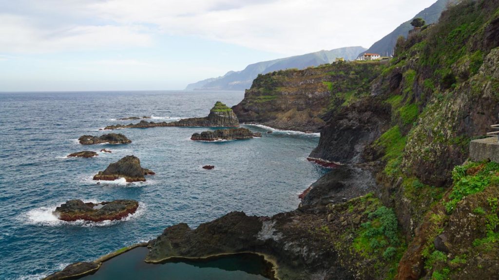 Madeira bietet tatsächlich eine unfassbar unbeschreiblich schöne Felsenküste mit zahlreichen Felsformationen, die aus dem Meer ragen und teilweise Schutz und Schwimmmöglichkeiten bieten. Ihr werden auf euere Fahrt an der Westküste nicht nur einmal ungeplant anhalten.