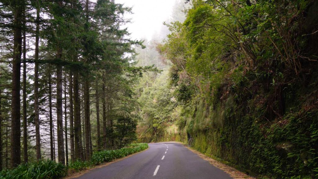 Der Weg nach Ribeiro Firo führt durch einen leicht nebligen Wald und mit jedem Kilometer sinkt die Temperatur. Die fahrt zum Parkplatz dauert ca. 30 Minuten. Ihr solltet schauen, dass ihr hier bei klarem Himmel den Aussichtspunkt besucht, da sonst die Aussicht durch die Wolkendecke etwas getrübt ist. Die Wanderung zum Aussichtspunkt „Balcoes“ dauert auch nur knappe 30 Minuten und führt durch eine Art Märchenwald.