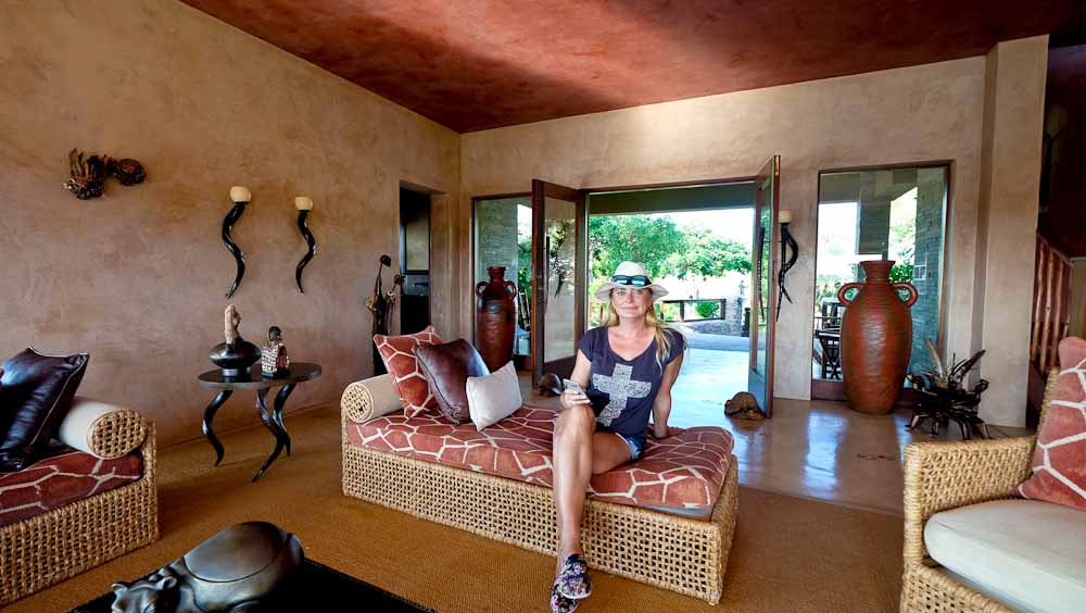 And a second terrace with two comfortable chairs with a perfect view of the reserve . The next day I would have some cute visitors here… I left the room to see the rest of the Lodge, which is really huge and impressive.