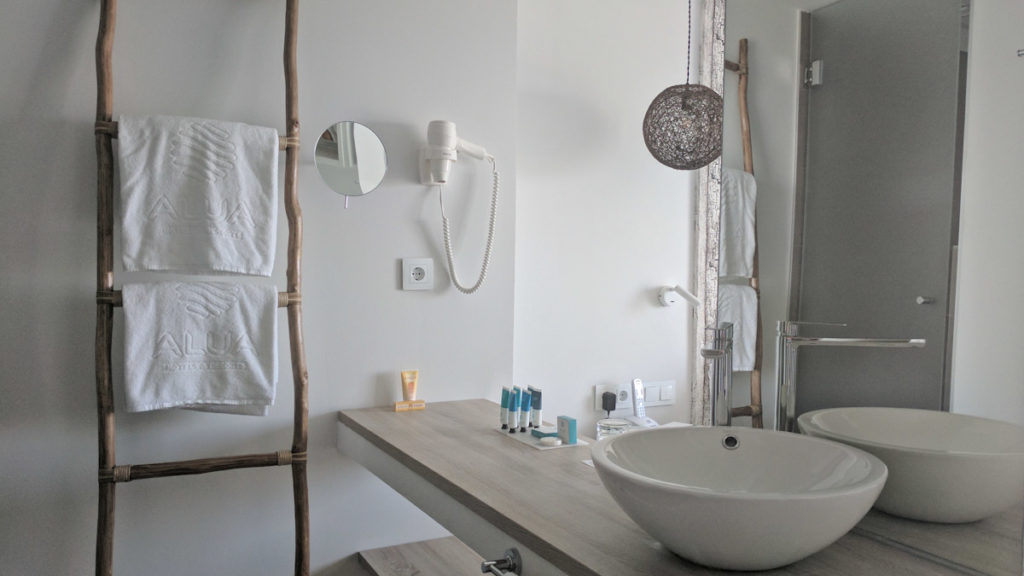 Die Zimmer sind hell und sehr modern eingerichtet. Das Badezimmer ist durch eine Spiegelwand mit dem Schlafbereich getrennt und ein Balkon lädt zum Entspannen ein. Zu der regulären Ausstattung im Badezimmer warten auf jeden Gast jeweils zwei Poolhandtücher im Zimmer, die täglich gewechselt werden. Das „Alua Soul Hotel“ bietet den Gästen verschiedene Verpflegungsangebote. Halbpension oder auch All-Inklusive, wobei ich mit dem All-Inklusive Angebot mehr als zufrieden war. Besondern bei Temperaturen um die 30 Grad, ist es sehr angenehm, wenn man an der Bar die Getränke umsonst bekommt und keine Flaschen im Supermarkt kaufen muss.
