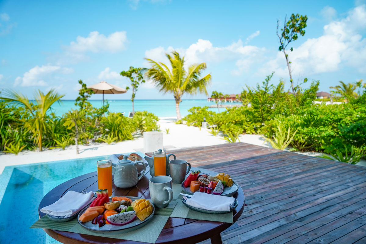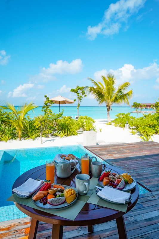 Das Konzept eines All Inklusive Resorts auf den Malediven ohne einen bitteren Nachgeschmack eines Pauschalurlaubs geht hier auf. Die kulinarische Auswahl überzeugt in allen Punkten und kann sich sehen lassen. Mit Liebe zum Detail werden Gerichte zubereitet und auch das Buffet Restaurant ist ein Hingucker. Wer selbst Hand anlegen möchte, wird beim traditionellen Kochkurs das Lokale Flair spüren und eine tolle Erinnerung nach Hause mitnehmen. Langeweile kommt hier nicht so schnell auf, denn entweder geniesst man ein erfrischendes Getränk an der Sunsetbar oder vergnügt sich im Wasser. Egal ob Pärchen oder Familien, das Angebot überzeugt und das Preis-Leistungsverhältnis bietet einen erholsamen Urlaub. Die Beachvilla für 7 Nächte gibt es schon ab 4.822 € (ohne Flüge) – eine Wasservilla mit einem privaten Pool gibt es für ab 6.022 € .