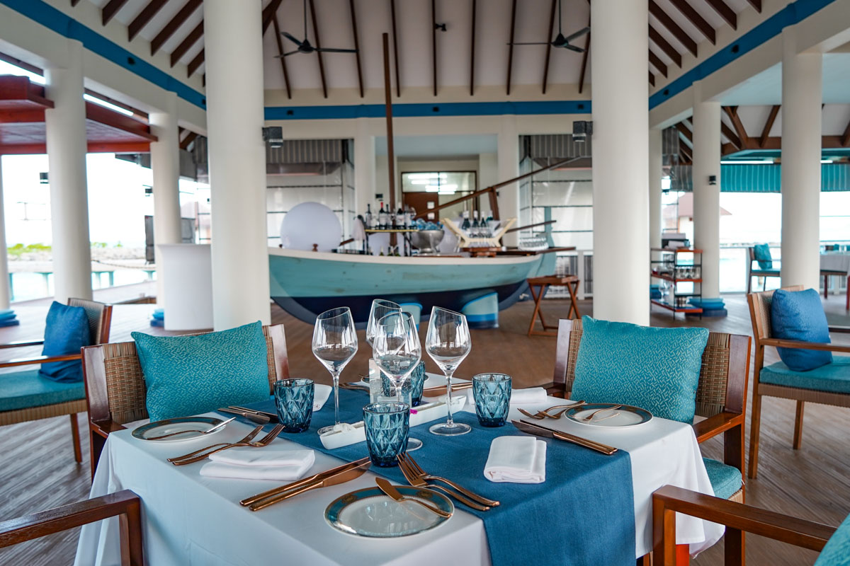 Weitere Restaurants im Resort sind: CHARCOAL mit frischen Gerichte vom Grill , das NÜ (Restaurant) mit mediterranen Seafood Spezialitäten über dem Wasser und einer mit Sunset Rooftop Bar, das KAAGÉ (Restaurant) mit maledivische Köstlichkeiten in fine-dining Atmosphäre und Kochkursen und für einen gemütlichen Sundowner steht das BAY ROUGE (Poolbar)zur Verfügung. Abends geniesst man hier am Pool einen leckeren Tagescocktail und lauscht der Live Music (DJ). Das Konzept ist wirklich sorglos, denn egal ob Vegetarier, Fischliebhaber oder ausgefallene traditionelle Gerichte – hier kann jeder Gast ausgiebig schlemmen. Die Auswahl an Weinen und Cocktails ist ebenfalls erwähnenswert.