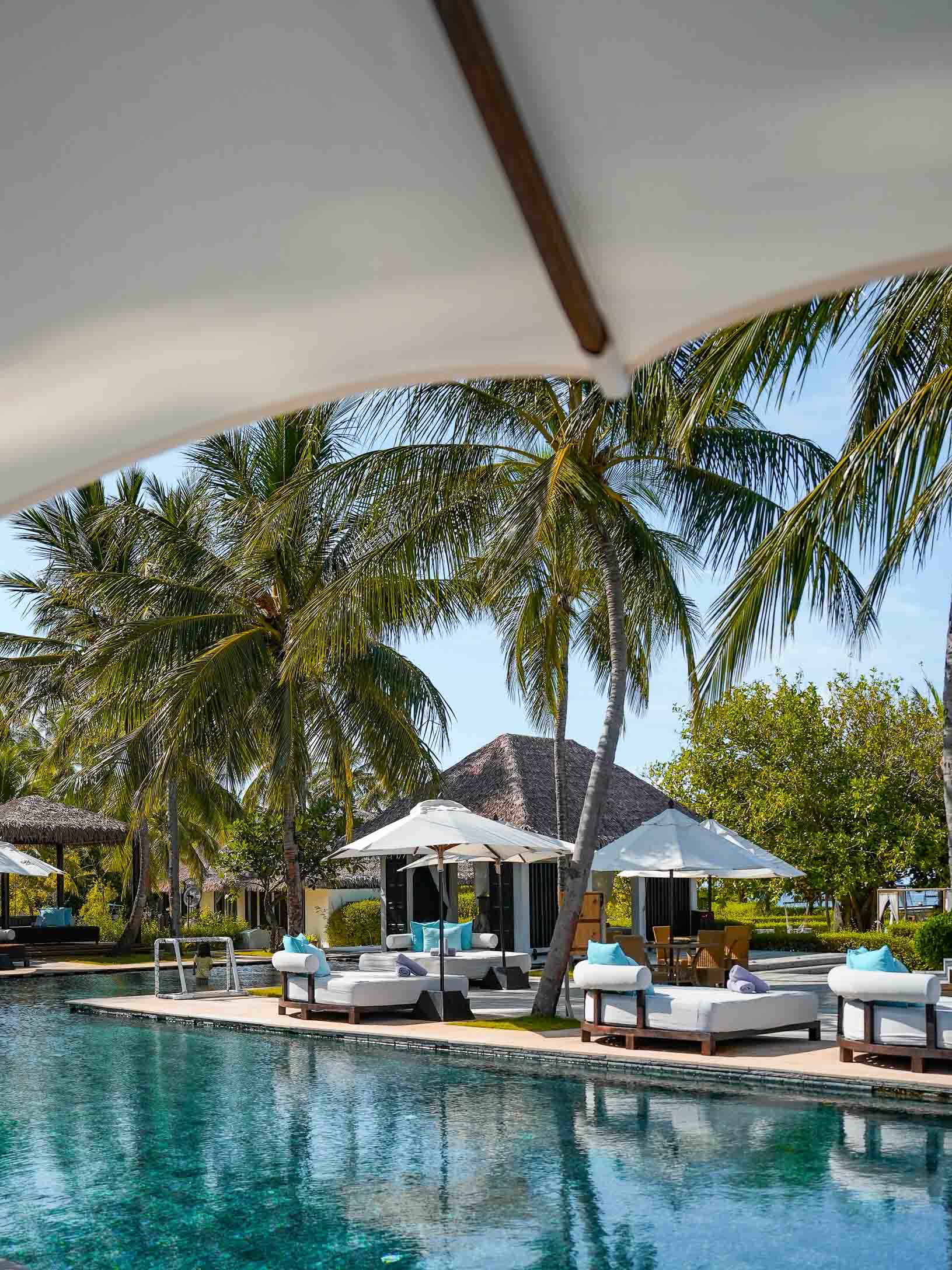 Ein echtes Highlight: der eigene Pool mit Blick aufs Meer. Ideal für eine Abkühlung zwischendurch oder einen Sundowner im Wasser, wenn der Himmel über dem Indischen Ozean in Rosa- und Goldtönen leuchtet. Die Außendusche unter Palmen ist ebenfalls ein kleines Erlebnis für sich – Barfuß-Luxus pur.