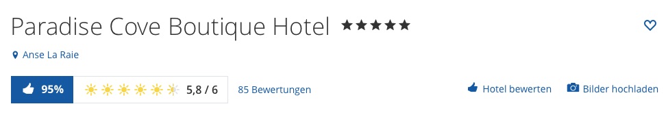 Für das Paradise Cove haben mich diese Bewertungen und eine Weiterempfehlungsrate von 95% gelockt. :