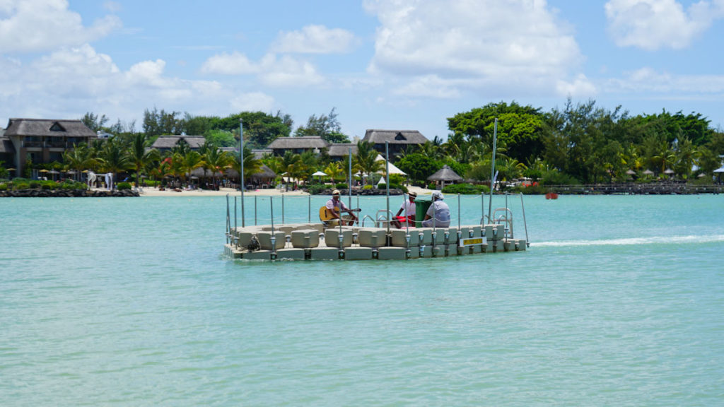 Einige Liegestühle mit einem Sonnenschirm im Wasser und ein paar Tische für das BBQ sind hier auf der Insel zu finden. Theoretisch kann man von der Insel bis zum Resort auch wieder schwimmen, was einige Gäste auch tatsächlich machen. Alle anderen geniessen eine kurze Fahrt mit dem selbstgebauten Floss.