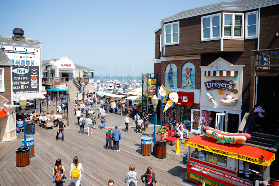 Das Aquarium of the Bay ist ein beliebtes Ausflugsziel in San Francisco für Familien mit Kindern. Es befindet sich gleich neben dem berühmten Pier 39 und dem Hard Rock Cafe San Francisco in Fisherman`s Wharf. Sehr interessant sind dort natürlich die über 50 Haie die in den Aquarien und Tunneln herumschwimmen. Ein Ticket kostet für Erwachsene Personen ungefähr 16,95 US-Dollar und für die Kinder 10,00 US-Dollar. Was macht man noch am Pier 39 ? Einfach wie alle Touristen gemütlich die Souvenisshops besichtigen, sich in ein Restaurant setzen und das leckere Essen geniessen. Tatsächlich ist die Auswahl der Restaurants und Snack Imbisse sehr groß, mit leerem Magen solltet ihr hier nicht hinkommen.
